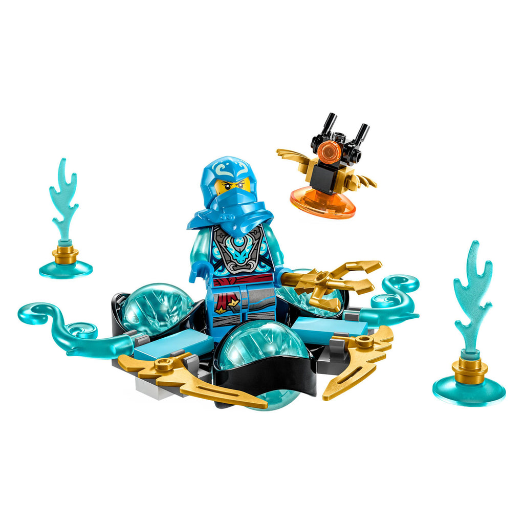 Maak je klaar om drakenkracht Nya te trainen en haar vaardigheden te verbeteren op deze hindernisbaan! Plaats haar in de spinner, duw erop en kijk hoe ze vooruit schiet. Ze moet de waterhindernissen ontwijken, de Imperium Droid met zijn staf uitschakelen en de gouden drakenenergiekern in de kom bemachtigen. Blijf oefenen om de nieuwe NINJAGO® wereld te beschermen!