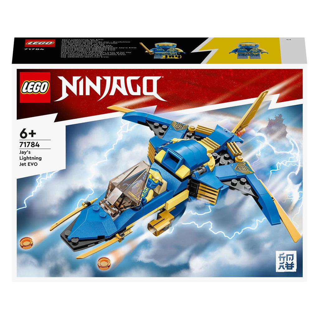 Geef ninjafans van 7 jaar en ouder de kans om de lucht in te gaan boven NINJAGO City met Jay's Bliksemstraaljager EVO (71784). Dit supercoole speelgoedvliegtuig kan worden geüpgraded naar een nog groter en imposanter model door 2 noppenschieters, gouden zwaarden en een gouden roer toe te voegen.Deze modelbouwset met een bliksemstraaljager wordt geleverd met een LEGO NINJAGO poppetje van Jay, die kinderen in de cockpit kunnen plaatsen om hoog in de lucht ninja-avonturen na te spelen. Kinderen kunnen het speelgoed ook combineren met andere NINJAGO sets in hun collectie voor nog meer speelmogelijkheden. Laat de LEGO Builder app jou en je kind begeleiden tijdens het bouwen van het voertuig.NINJAGO fans zullen het geweldig vinden om scènes vol spannende actie na te spelen met deze set met speelgoed om te verzamelen. De set is onderdeel van een uitgebreide collectie LEGO NINJAGO speelgoed, met coole poppetjes, ninja's, voertuigen, wezens en leuke locaties. Dit bouwspeelgoed is een fantastisch verjaardagscadeau-idee om kinderen vanaf 7 jaar die dol zijn op avontuur mee te verrassen.Afmetingen: dit speelgoedvliegtuig is ca. 6 cm hoog, 22 cm lang en 21 cm breed.Bevat 146 onderdelen.