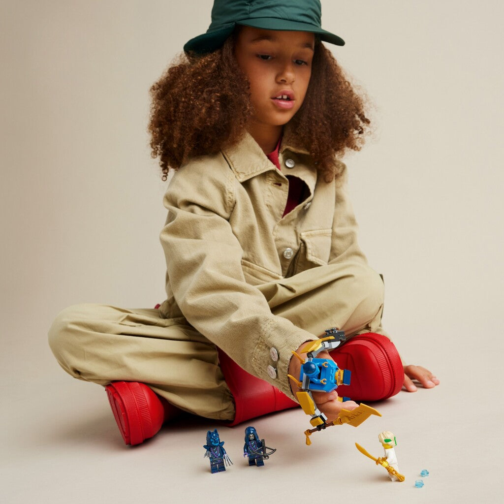 Jongens en meisjes vanaf 6 jaar kunnen scènes boordevol actie uit seizoen 2 van de NINJAGO Dragons Rising tv-serie naspelen met Jay's mecha strijdpakket (71805).