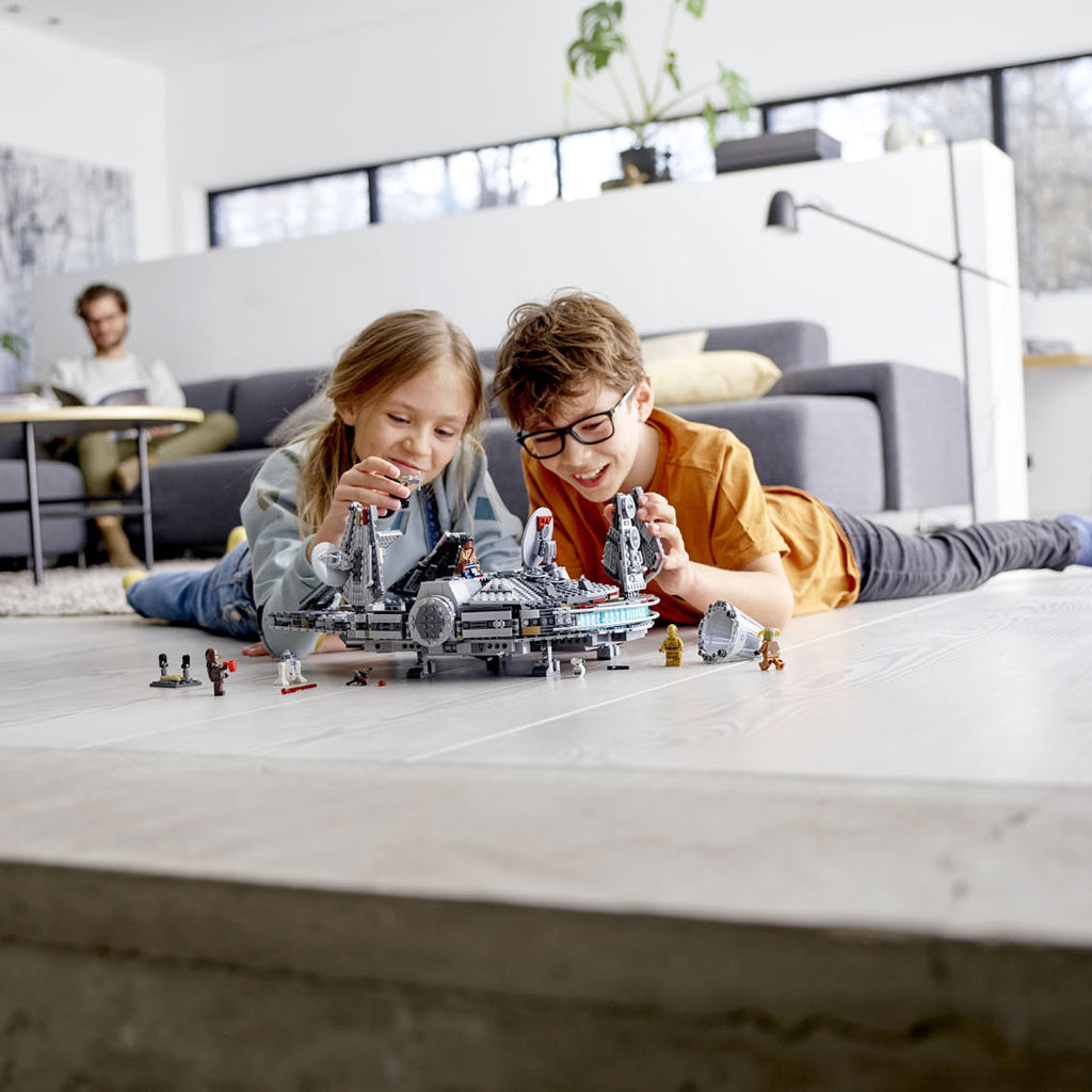 Ga met Finn, Chewbacca, Lando Calrissian, Boolio, C-3PO, R2-D2 en D-O mee op reis door het universum aan boord van de legendarische Millennium Falcon. Net als in Star Wars: The Rise of Skywalker heeft deze versie ooit betere tijden gekend, maar hij doet de Kessel Run nog steeds binnen 12 parsecs... hopelijk. Dus breng de laadklep omhoog, ga achter de knoppen zitten en bereid je voor op een avontuurlijke LEGO® Star Wars™ reis!