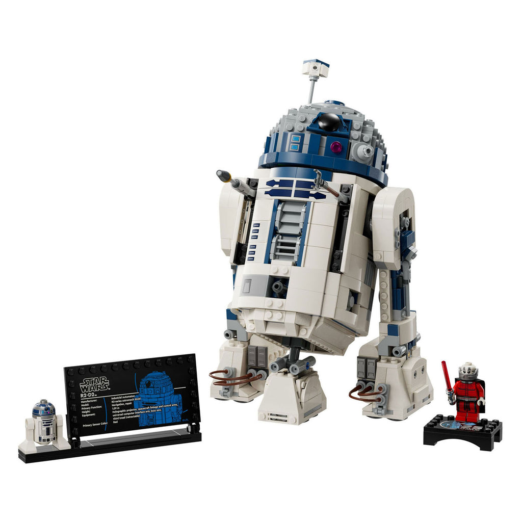 Laat kinderen hun liefde voor de populairste droid in het Star Wars universum tonen met deze van LEGO stenen gebouwde R2-D2 speelgoed robot figuur (75379). Dit speelse bouwmodel voor jongens en meisjes van 10 jaar en ouder zit boordevol authentieke kenmerken, zodat ze klassieke momenten en originele fantasieverhalen kunnen naspelen. Het hoofd van R2-D2 mini robot kan 360 graden draaien en het model is inclusief een derde been, periscoop en gereedschappen om aan de figuur te bevestigen.Dit bouwpakket voor kinderen bevat een LEGO Star Wars R2-D2 droid figuur, een speciale LEGO Star Wars minifiguur van Darth Malak ter ere van het 25-jarig jubileum met een lichtzwaard en displaystandaard, plus een R2-D2 informatieplaatje voor een opvallende blikvanger.De LEGO Robot set is een geweldig cadeau voor een jongen of meisje, alle Star Wars fans en verzamelaars en bevat stapsgewijze instructies. Download de LEGO Builder app met zoom- en draaifuncties om de creatieve ervaring nog leuker te maken.Afmetingen: het bouwbare LEGO R2-D2 droidmodel in deze set is ca. 24 cm hoog, 16 cm breed en 11 cm diep.Bevat 1050 onderdelen.