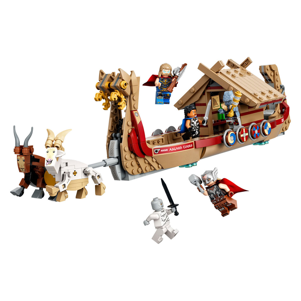 Een vikingschip met bekende personages uit de Marvel Studios film Thor: Love and Thunder - LEGO® Marvel Het Geitenschip (76208) is een prachtig cadeau voor kinderen vanaf 8 jaar. Strijd aan boord van Thors vliegende schip Het vikingschip wordt voortgetrokken door de legendarische geiten Tandenknarser en Tandenvermaler, die in de lucht zweven zodat kinderen het schip gemakkelijk kunnen voortduwen. Er zijn 5 minifiguren - Thor, Machtige Thor, Valkyrie, Korg en Gorr - plus diverse wapens en accessoires, waaronder Thors bijl Stormbreaker. Het dak van de middelste kajuit kan eraf voor speelruimte binnenin. De authentieke accessoires, waaronder een steeksleutel, brandblusser, kaart van New Asgard, fles en zonnesteen, geven nog meer fantasierijke speelmogelijkheden. Na alle superheldenavonturen kunnen kinderen het schip in hun kamer neerzetten. In de gratis LEGO Bouwinstructies app vind je bovendien digitale zoom- en draaifuncties om het model te visualiseren en het bouwen nog leuker te maken. Thors vikingschip - LEGO® Marvel Het Geitenschip (76208) biedt volop inspiratie voor allerlei spannende avonturen gebaseerd op de Marvel Studios film Thor: Love and Thunder Bekende superhelden - er zijn 5 minifiguren uit de film aan boord van Thors indrukwekkende schip: Thor, Machtige Thor, Valkyrie, Korg en Gorr. De vele authentieke accessoires zorgen voor nog meer fantasierijke speelmogelijkheden Cadeau voor kinderen - verras Marvel fans van 8 jaar en ouder voor hun verjaardag of de feestdagen met een heleboel spannende avonturen aan boord van een vikingschip Talloze speelmogelijkheden - het volledige model is ca. 10 cm hoog, 43 cm lang en 12 cm breed en kan uitstekend worden gecombineerd met ander LEGO® Marvel bouwspeelgoed voor nog meer speelplezier Interactief digitaal bouwplezier - met de LEGO® Bouwinstructies app kunnen kleine bouwers tijdens het bouwen inzoomen en een digitale versie van hun model draaien en visualiseren Creatief spel - al het LEGO® Marvel bouwspeelgoed biedt jonge superhelden hoogwaardige speelsets die zijn ontworpen voor eindeloze fantasierijke speelmogelijkheden Kwaliteit gegarandeerd - LEGO® onderdelen voldoen aan strenge kwaliteitsnormen, waardoor ze consistent, compatibel en gemakkelijk in elkaar te zetten en uit elkaar te halen zijn Veiligheid voorop - LEGO® onderdelen worden gegooid, verhit, geplet, gedraaid en geanalyseerd om er zeker van te zijn dat ze voldoen aan strikte wereldwijde veiligheidsnormen