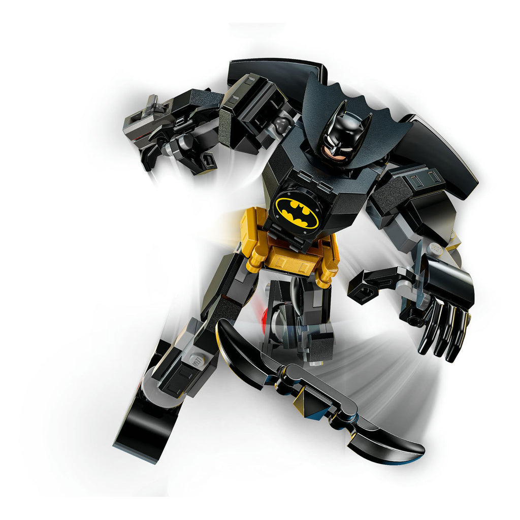 Deze Batman™ mecha is ideaal voor fans van superheldenactie van 6 jaar en ouder. De grote Batman figuur en de minifiguur van de superheld maken van het Batman mechapantser (76270) een leuke verrassing voor jonge misdaadbestrijders. Kinderen plaatsen de LEGO® Batman minifiguur in de cockpit. De mechafiguur houdt een bouwbare Batarang™ vast en heeft een noppenschieter op zijn arm. Op zijn rug zit een jetpack met een 2-delige cape, die in verschillende posities kan worden geplaatst. De minifiguur draagt een stoffen cape en heeft ook een Batarang, die op de rechterarm van de mecha kan worden opgeborgen. Dankzij de verstelbare armen, benen en handen van de mecha kunnen fans van Batman en superheldenfiguren genieten van eindeloze actie. Kinderen kunnen dit Batman speelgoed ook combineren met andere LEGO mecha uit het assortiment (apart verkrijgbaar). Voor nog meer digitaal plezier kunnen bouwers inzoomen, modellen in 3D draaien en hun voortgang bijhouden met de intuïtieve LEGO Builder app. Batman™ superheldenmecha - trakteer je kind op het Batman mechapantser, een veelzijdige speelgoedfiguur voor jongens en meisjes vanaf 6 jaar Robotspeelgoed om te verzamelen - inclusief een bouwbare Batman™ mecha met een Batarang™, noppenschieter en jetpack, plus een Batman minifiguur met een stoffen cape en Batarang die op de arm van de mecha kan worden opgeborgen Draagbaar Batman™ speelgoed - dit kleine LEGO® model is volledig verstelbaar voor dynamische actie en zorgt voor geweldige avonturen, waar kinderen ook heen gaan Speelgoed om mee te spelen en neer te zetten - deze Batman™ verzamelfiguur kan in allerlei standen worden neergezet voor fantasierijk rollenspel en creatieve displays Creatief Batman™ cadeau voor kinderen - trakteer jongens en meisjes die fans zijn van Batman, LEGO® bouwsets of mecha op deze bouwbare Batman speelgoedrobot 3D bouwinstructies - kinderen kunnen de LEGO® Builder app downloaden voor een complete bouwervaring met digitale functies om in te zoomen en modellen in 3D te draaien, sets op te slaan en hun voortgang bij te houden LEGO® DC collectie - de uitgebreide reeks LEGO DC bouwspeelgoed is ontworpen voor eindeloze fantasierijke bouw- en speelmogelijkheden Groots plezier - deze 140-delige bouwbare Batman™ mecha is ca. 12 cm hoog en geeft jonge superhelden de avonturen in eigen handen