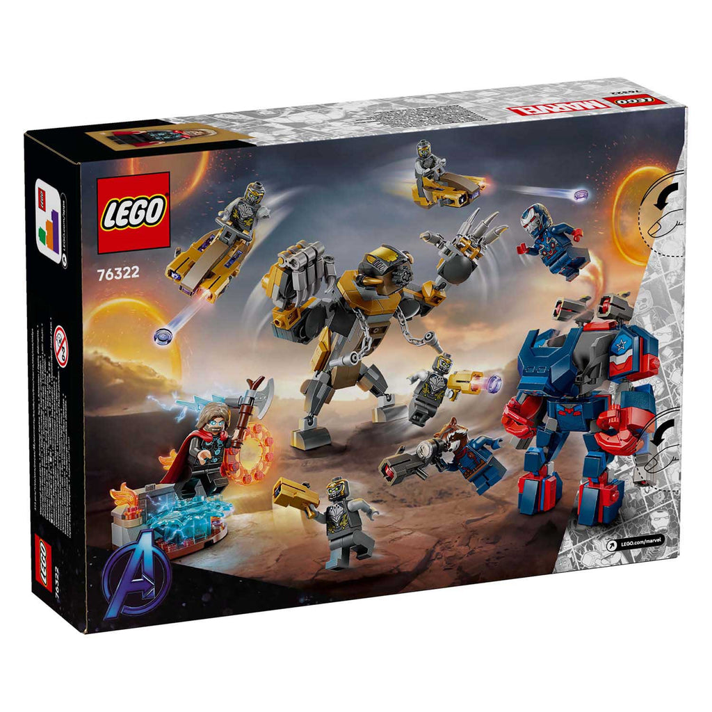LEGO® | Marvel Avengers: Endgame Thor vs. Chitauri (76322) is een hoogwaardige superheldenbouwset voor kinderen vanaf 8 jaar. Dit cadeau voor Marvel liefhebbers is ideaal voor fans van bouwbare mecha, actiehelden en de Marvel Studios film Avengers: Endgame. Deze bouwset is gebaseerd op een actiescène uit de Marvel Avengers film en bevat 2 grote LEGO figuren: de Iron Patriot mecha met 4 noppenschieters en een imposante Chitauri gorilla. Beide modellen zijn verstelbaar voor dynamisch speelplezier. Er zijn 7 minifiguren: Iron Patriot MK2, Rocket met een grote noppenschieter, Thor met Stormbreaker en 4 Chitauri, waarvan 2 met een gouden noppenschieter. De set bevat ook 2 jetscooters en een kleine omgeving voor Thor om extra noppen te bewaren. Deze bouw- en speelset kan worden gecombineerd met de set Avengers: Endgame eindstrijd (76323) voor nog grotere avonturen. En met de leuke, intuïtieve LEGO Builder app kunnen bouwers inzoomen en modellen in 3D draaien. De set bevat 373 onderdelen.