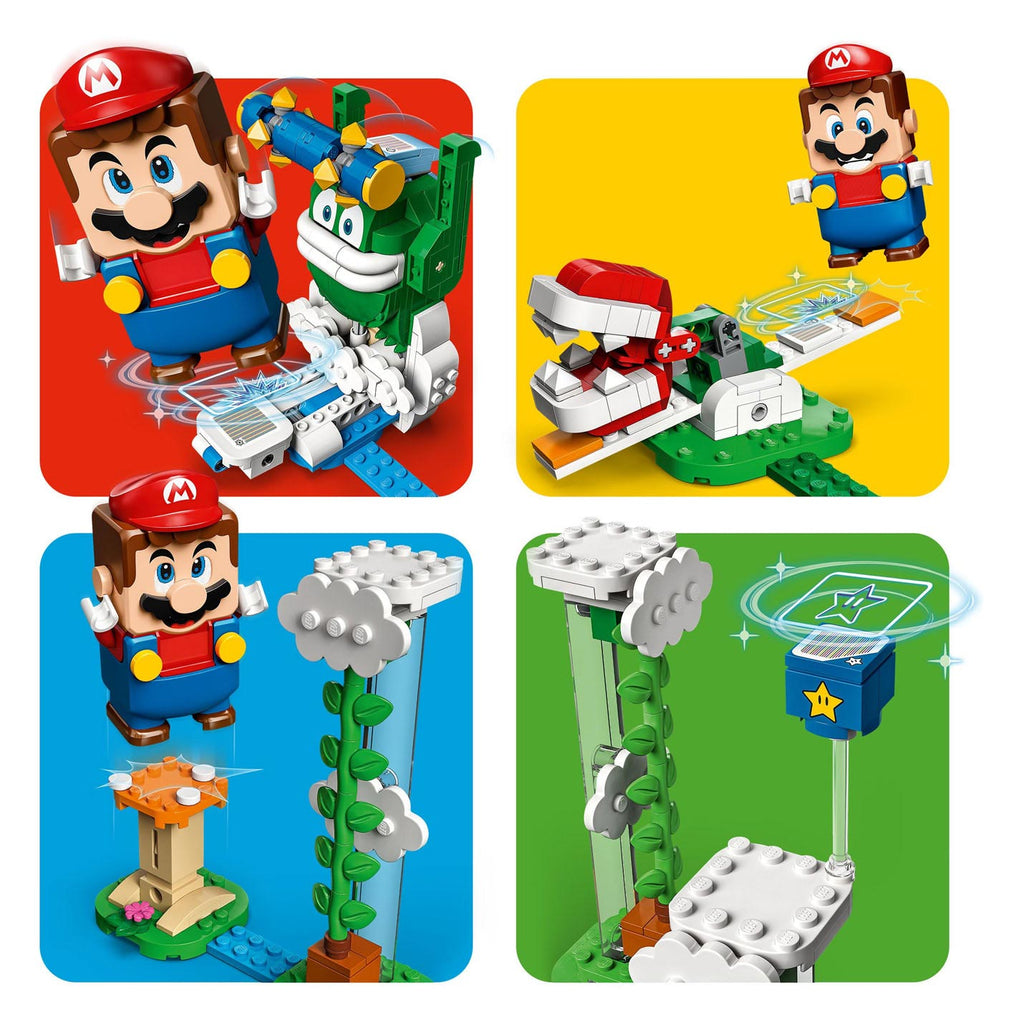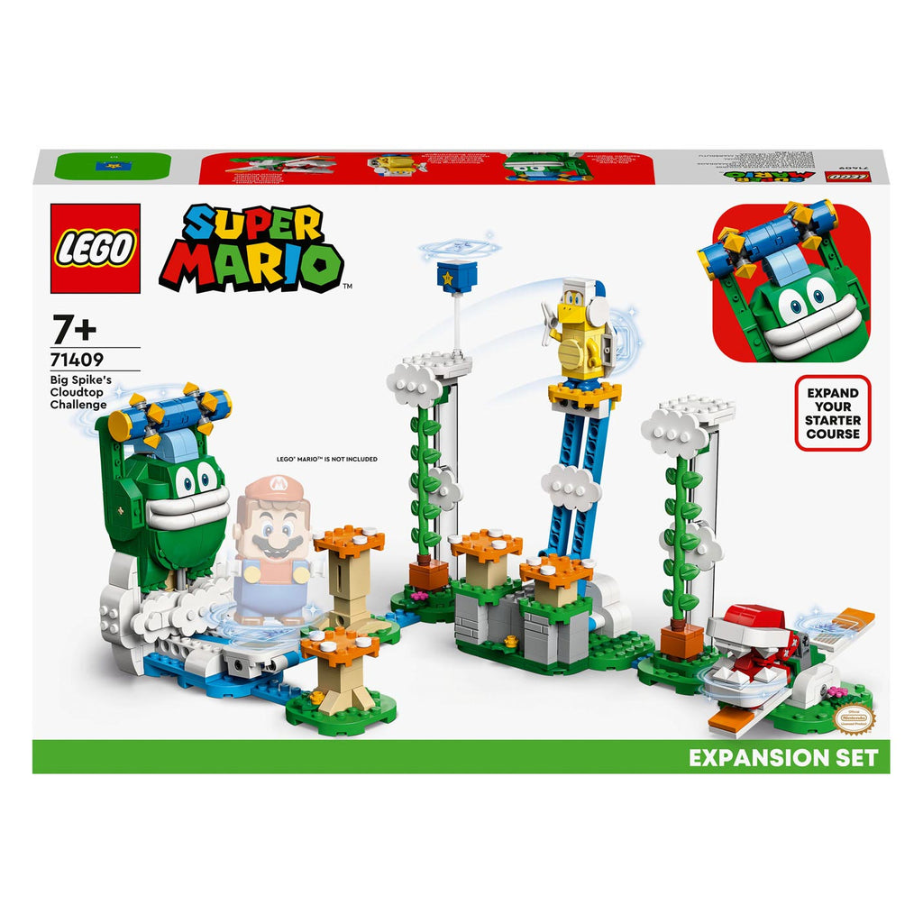 Kinderen kunnen een LEGO Super Mario level tussen de wolken maken met de Uitbreidingsset: Reuzen-Spikes wolkentop uitdaging (71409). Ze verdienen digitale munten door het met de LEGO Mario, LEGO Luigi of LEGO Peach figuren (niet inbegrepen) op te nemen tegen de Reuzen-Spike, op de oranje paddenstoeltrampolines te springen, het supersterblok te gebruiken en meer. (Let op: kinderen hebben de startset Mario 71360, Luigi 71387 of Peach 71403 nodig om met deze Super Mario uitbreiding te kunnen spelen.)Het Super Mario speelgoed bevat bekende uitdagingen uit de games en 3 LEGO poppetjes: een Reuzen-Spike, een Boomerang Bro en een Piranha Plant. Met de LEGO Super Mario startsets en uitbreidingssets kunnen fans hun eigen bouwbare game creëren, door unieke levels te maken, het parcours uit te breiden en het weer opnieuw in te delen. Verras kinderen vanaf 7 jaar met dit geweldige cadeau voor een verjaardag, kerst of een andere speciale gelegenheid. Afmetingen: deze modulaire set is ca. 19 cm hoog, 38 cm breed en 25 cm diepBevat 540 onderdelen