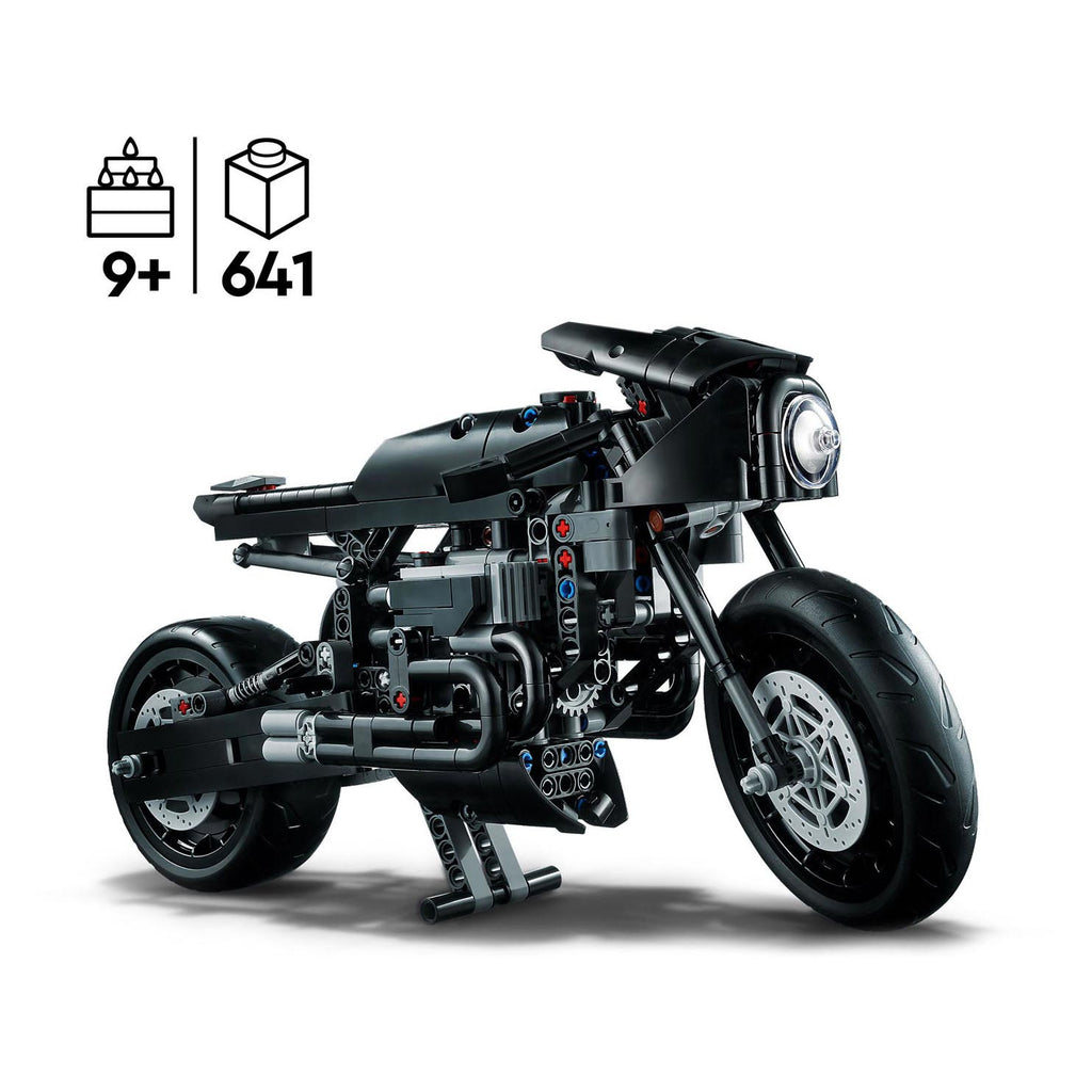 Geef kleine Batman-fans vanaf 9 jaar een geweldige uitdaging en urenlang plezier met dit LEGO Technic THE BATMAN - BATCYCLE (42155) motor speelgoed, geïnspireerd door de film THE BATMAN uit 2022, vol coole functies. Kinderen zullen met plezier alle onderdelen van deze authentieke schaalmodel kit in elkaar zetten voordat ze hun favoriete filmscènes naspelen. De motor beschikt over werkende besturing, ophanging, een kettingaandrijving die de H4-motor met het achterwiel verbindt en een standaard, zodat kinderen hun verzamelbare model kunnen neerzetten. LEGO Technic modelbouwpakketten zijn een geweldige manier om kinderen op een laagdrempelige en realistische manier kennis te laten maken met techniek. Combineer dit Batman constructie speelgoed met de andere sets om je kind nog meer plezierige en leerrijke bouwprojecten te geven. Er worden eenvoudig te volgen bouwinstructies meegeleverd in de doos, waardoor kleine superhelden hun Batman schaalmodel makkelijk kunnen bouwen. Deze instructies zijn ook terug te vinden op de LEGO Builder app, waar kinderen hun bouwproject kunnen inzoomen, draaien en opslaan. Afmetingen: deze LEGO Technic Batman speelgoedmotor is ca. 16 cm hoog, 33 cm lang en 11 cm breed. Bevat 641 onderdelen.