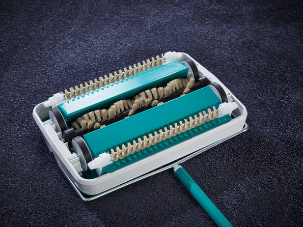 De tapijtdraaier Regulus brengt snel reinheid in het huis. Geheel zonder stroom, de wendbare draaier is met één greep klaar voor gebruik. Geen kabel op- en afrollen, geen gewicht dat door de woning getrokken of gedragen moet worden, geen lawaai en stroomverbruik, dat bij een stofzuiger tussen 800 en 1400 watt per uur kan bedragen. Voordat de stofzuiger überhaupt gebruikt kan worden, is de Regulus al klaar. Ook het vermogen klopt: Drie draaiborstels verzamelen stof, vuil, kruimels en haren. Eenvoudig de hoogte verstellen met de grote draaiknop en hoogpolige tapijten kunnen net zo makkelijk worden gereinigd als laagpolige. De tapijtdraaier Regulus bestaat uit een stabiele metalen behuizing en draait met een breedte van 22 cm.