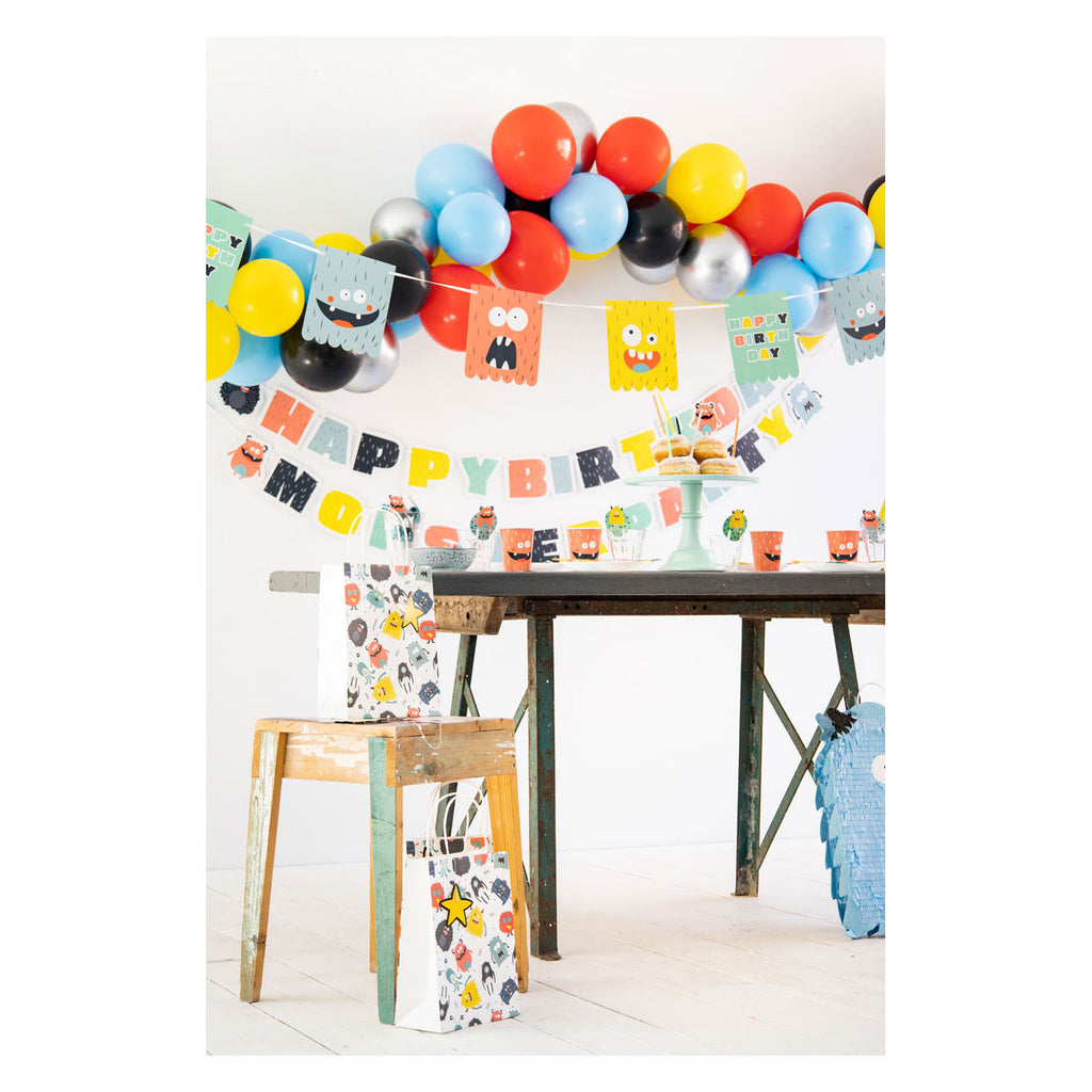 De Letterslingers Monster Bash zijn perfect om een kinderfeestje op te vrolijken. Deze set bevat 2 letterslingers in verschillende kleuren. Elke slinger is ongeveer 14x150cm groot en gemaakt van papier. Hang ze op en creëer een feestelijke sfeer!