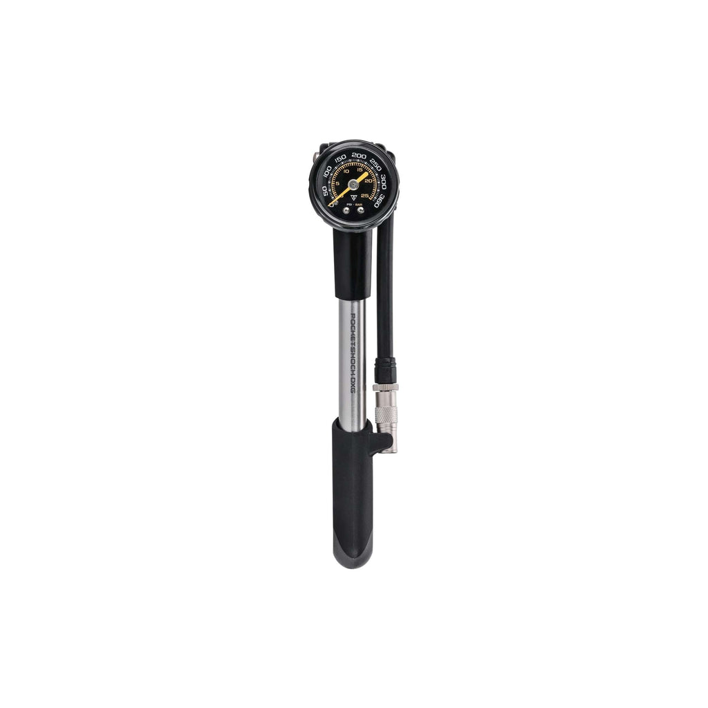 De Pocket Shock DXG een schokpomp met een gemakkelijk af te lezen meetklok voor nauwkeurige drukmetingen tot 360 psi 24,8 bar. Een ontluchtingsknop en Pressure-Rite-connector maken het instellen van de juiste druk eenvoudig en elimineren luchtverlies bij het loskoppelen, terwijl de flexibele slang spanning van de klepsteel haalt tijdens het pompen.