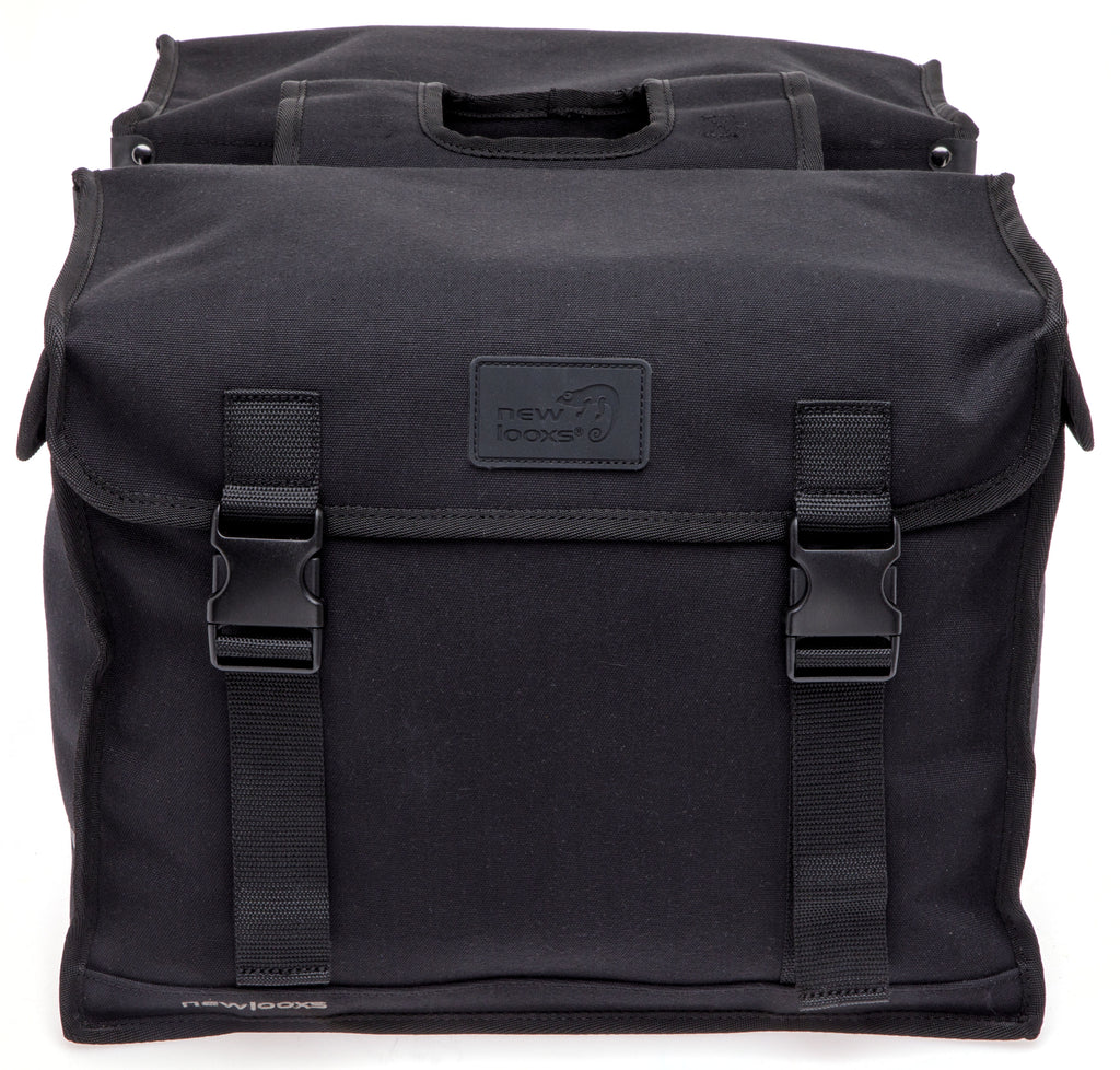 Stevige, ruime fietstas gemaakt van waterafstotend canvaslook polyester.Zeer geschikt als boodschappentasMet kliksluitingReflectie.Is te gebruiken met een afstandhouder (niet inclusief)Ruimte voor snelbinders Dit zijn oersterke, grote dubbele boodschappentassen, ideaal als je veel ruimte nodig hebt om spullen mee te nemen op de fiets. Gemaakt van waterafstotend polyester in een canvaslook. Deze New Looxs Double Pannier Camping fietstassen hebben wij al meer dan 40 jaar in onze collectie. Deze tassen hebben zich dus wel bewezen! Veel ruimte Dit is een echte ruime fietstas, met een inhoud van 66 liter de grootste dubbele tas van New Looxs. Als de tas vol zit, dan houd je de tas goed bij elkaar door het extra aantrekbandje binnen in de tas. Daardoor gaat de tas niet openhangen. Je sluit de tas met kliksluitingen. De naden zijn dubbel gestikt en daarmee extra sterk. De tassen hebben een extra sterke achterplaat voor de stevigheid. Past op (bijna) elke fiets De fietstas wordt aan de bagagedrager bevestigd met riempjes. Dat maakt deze tas geschikt voor vrijwel alle fietsen, ook elektrische. De brug tussen de twee delen van de tas is 16,5 cm. Je kunt de fietstas extra vastzetten aan de zijkant van de bagagedrager met een klittenband riempje. Je zet de tas 1 keer vast en daarna zit deze goed bevestigd op de drager. De snelbinders zijn gewoon te gebruiken in combinatie met deze tas. Wij raden bij zwaar gebruik van deze tas aan om een New Looxs afstandhouder te gebruiken. Deze voorkomt dat de tas tegen het wiel aan komt als de tas zwaar beladen is. Je steekt de afstandhouder in de insteekstrips op de achterkant van de fietstas. Veilig onderweg Deze dubbele tas is gemaakt van waterafstotend polyester met canvas look. Als je de klep dichtmaakt is de tas goed bestand tegen kleine regenbuien. Het materiaal is ook nog eens erg sterk. Voor de veiligheid is deze tas afgewerkt met reflectie voor een betere zichtbaarheid in het donker. New Looxs Camping dubbele fietstas. Afmeting: 43 x 22 x 35 cm, inhoud 66 liter in de kleur zwart. Gemaakt van waterafstotend polyester met canvas uitstraling. Zeer geschikt als boodschappentas. Voorzien van kliksluiting en reflectie.