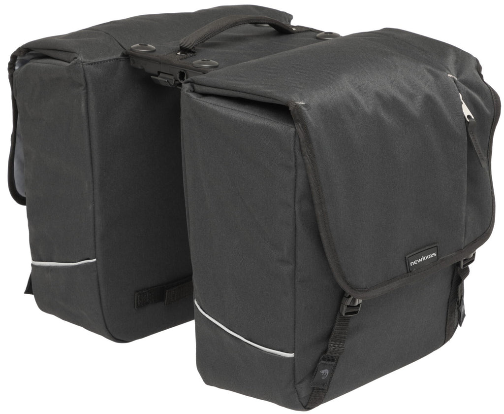 De Nova Double is een stijlvolle dubbele fietstas gemaakt van waterdicht polyester. Dankzij de speciale vorm van de klep is de tas goed waterafstotend tegen kleine regenbuien. In deze fietstas neem je meer mee dan je zou denken. De tas heeft een ruim hoofdvak en een extra ritsvakjes. Door de voorgemonteerde Racktime Snap-it adapter is deze fietstas geschikt voor Racktime bagagedragers.