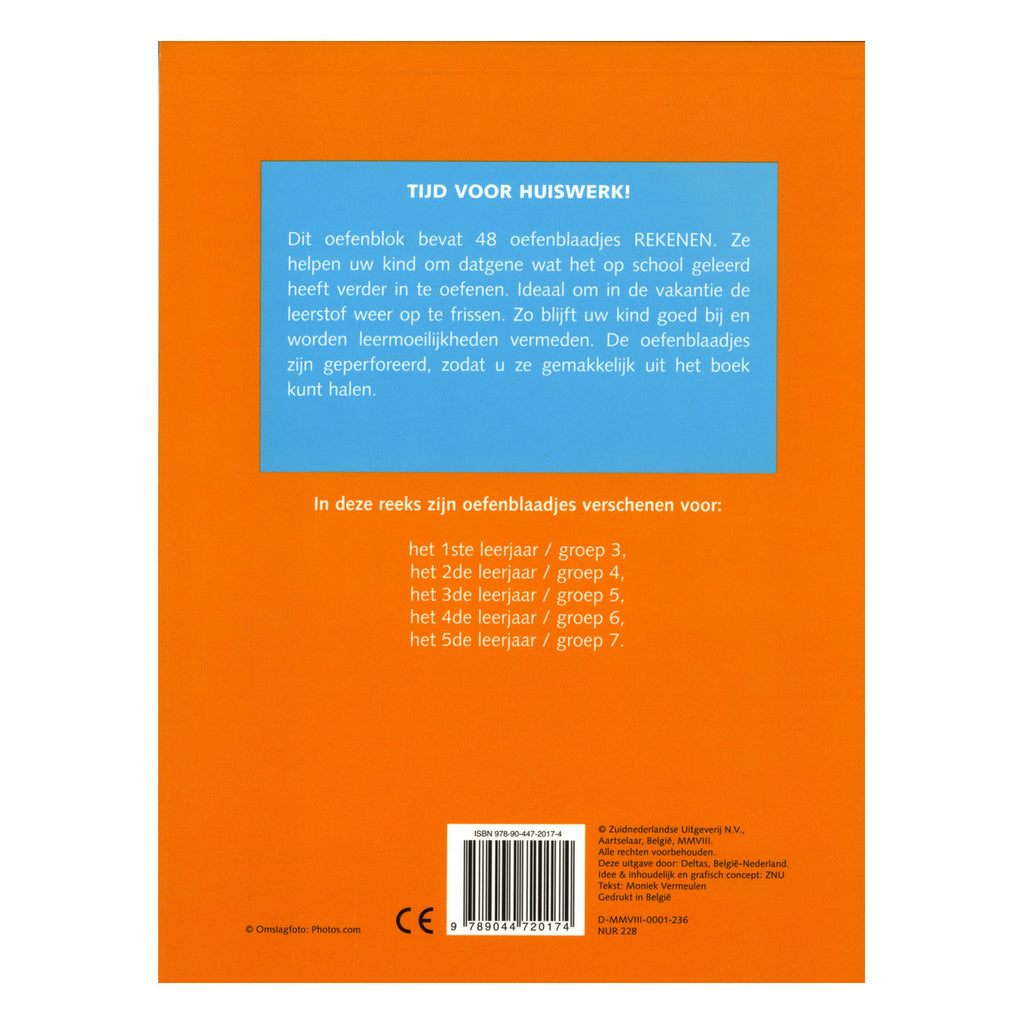Dit oefenblok bevat 48 oefenblaadjes rekenen. Ze helpen uw kind om datgene wat het op school geleerd heeft verder in te oefenen. Ideaal om in de vakantie de leerstof weer op te frissen. Zo blijft uw kind goed bij en worden leermoeilijkheden vermeden. De oefenblaadjes zijn geperforeerd, zodat u ze gemakkelijk uit het boek kunt halen.Inhoud: 96 pagina's. Paperback uitvoering.