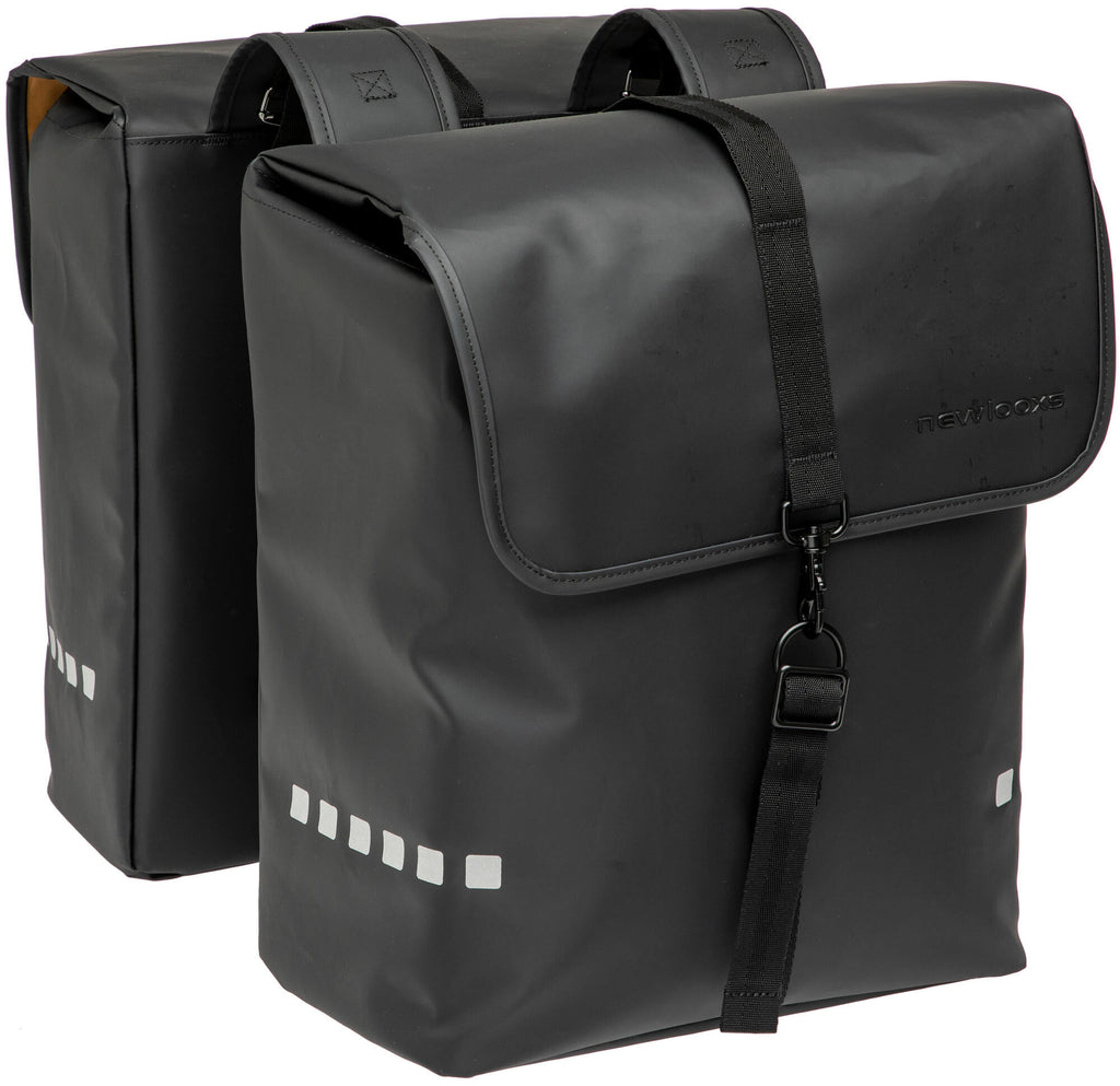 De New Looxs Odense 224.501mik zwarte dubbeltas is een stoere en ruime fietstas gemaakt van sterk materiaal. Deze dubbele fietstas heeft een capaciteit van 39 liter en is ideaal voor het vervoeren van zware spullen. De tas is waterdicht dankzij het 500D polyester met een TPU coating. Met de voorgemonteerde MIK Adapter kan de tas eenvoudig en snel op een MIK bagagedrager worden geklikt. Als je geen MIK bagagedrager hebt, kun je de tas bevestigen met een MIK Carrierplaat. De tas is voorzien van reflectie aan beide zijden voor extra zichtbaarheid en heeft een handige haaksluiting. Met deze New Looxs Odense dubbeltas ben je klaar voor elke fietsrit! Product specificaties - Materiaal: Polyester - Afmetingen: 34x16x38cm (x2) - Inhoud: 39 liter - Kleur: Zwart - Weersbestendig: Waterafstotend - Bevestigingssysteem: MIK Adapter - Inclusief regenhoes: Nee - Geschikt voor: MIK bagagedragers - Accessoire bevestigingssysteem: MIK Adapter