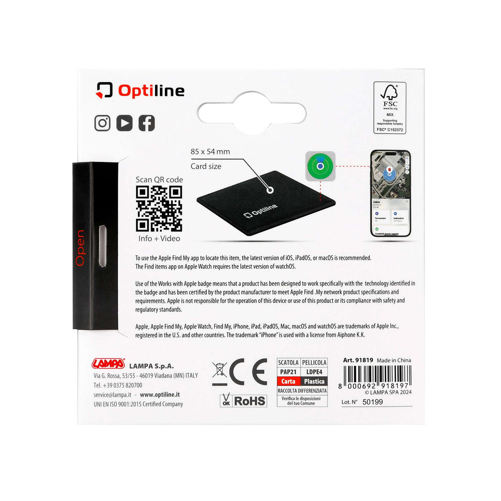 . Ontworpen om naadloos te werken met Apple's "Find My"-app. Dit ultradunne en compacte apparaat is de perfecte oplossing voor het monitoren van items en het bieden van discrete bescherming. Ultradun ontwerp: dankzij het slanke profiel past de tracker gemakkelijk in elke omgeving zonder ruimte in te nemen. Lijmtoepassing: dankzij de geïntegreerde lijm kan het worden bevestigd op motoren, fietsen, helmen, laptops, gereedschap en vele andere voorwerpen, wat een uitstekende beveiliging garandeert. Afmeting: 85x54x3 mm