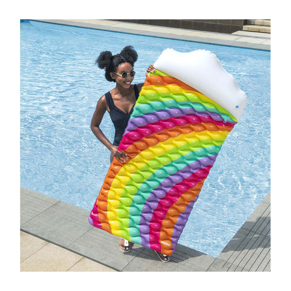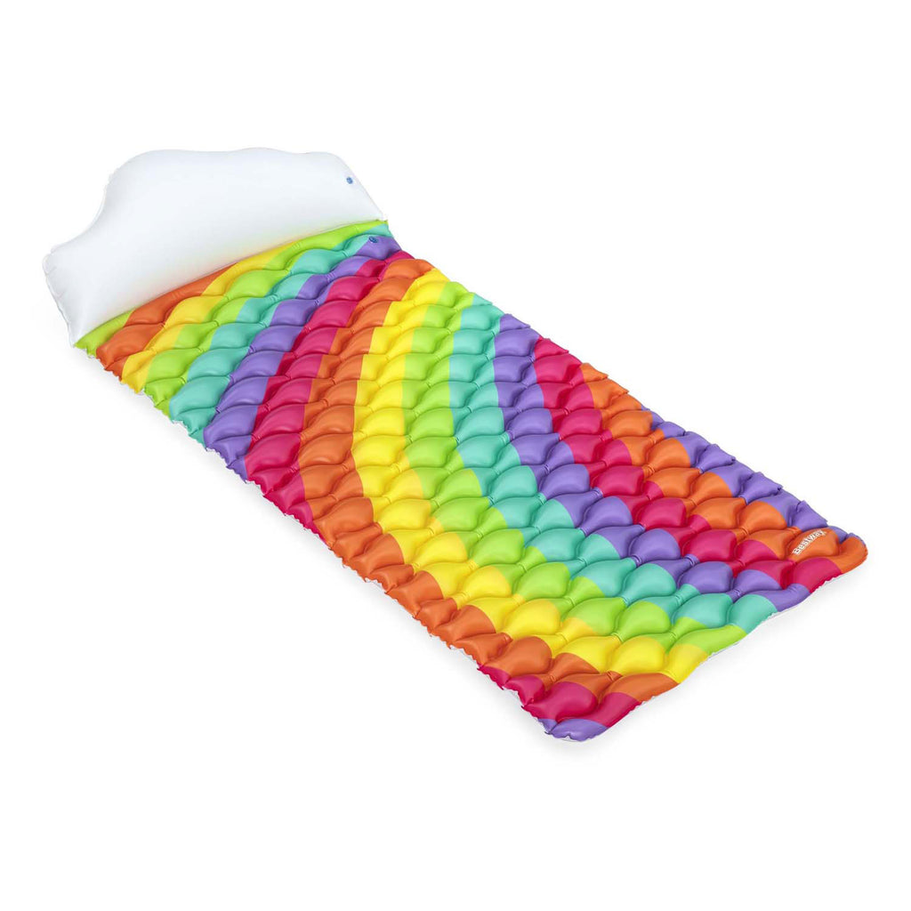 De Bestway Rainbow Dreams Luchtmatras is waar uw zomerse dagdromen van gemaakt zijn. De luchtmatras is perfect voor volwassenen, en heeft een comfortabel wolkenkussen waardoor uw hoofd comfortabel en ondersteund blijft, zodat u het gevoel heeft dat u in de lucht wegdrijft terwijl u van de zonneschijn geniet. Bovendien zal het heldere regenboogontwerp van de luchtmatras een glimlach op uw gezicht toveren terwijl u geniet van een ontspannende dag op het water. De Rainbow Dreams Luchtmatras rolt gemakkelijk op om het handig te kunnen dragen en opbergen gedurende het laag seizoen. U zal dol zijn op het gebruik van de Bestway Rainbow Dreams Luchtmatras voor veel komende seizoenen.