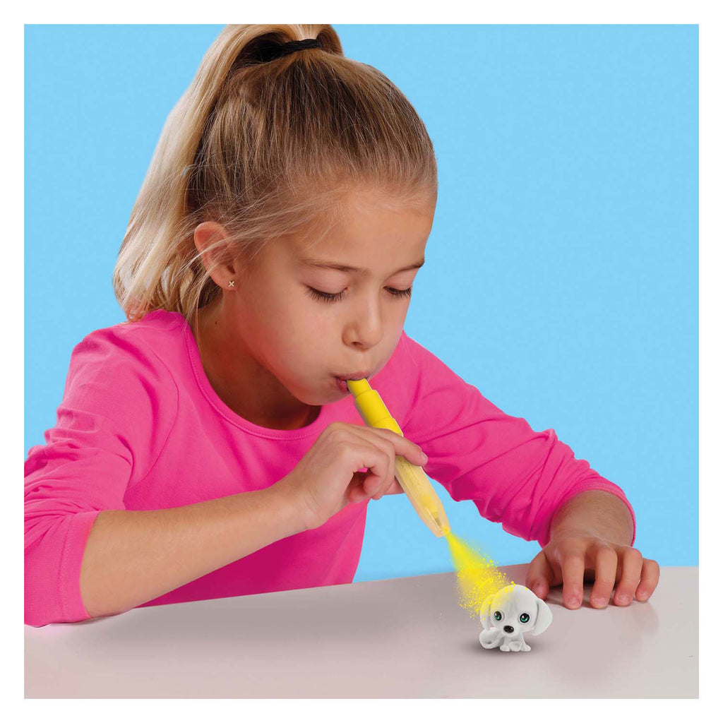 Ontdek Verrassende Puppy's Met De Blow Airbrush Pens! Maak je klaar voor een creatieve verrassing! Met deze Blow Airbrush Pens set ontdek je drie schattige puppy's die wachten om gevonden te worden. Blaas voorzichtig door de airbrush viltstiften en tover de verborgen puppy's tevoorschijn. Perfect voor kinderen die houden van creativiteit en dieren! Inhoud van de verpakking: 3 puppy's Blaas airbrush viltstift geel Blaas airbrush viltstift roze Blaas airbrush viltstift blauw Unieke Eigenschappen: Leuke hondjes met een zachte vacht Het is een verrassing welke puppy's je krijgt Stimuleert creativiteit en fijne motoriek Geschikt voor kinderen vanaf 5 jaar Ontwerp En Ontdek Je Eigen Puppy's Met deze set kunnen kinderen op een leuke en verrassende manier hun eigen puppy's ontdekken. De blaas airbrush viltstiften maken het makkelijk om kleurrijke patronen te creëren, waardoor elke puppy uniek is. Een geweldige manier om creatief bezig te zijn en plezier te hebben met schattige diertjes. Waarom Dit Perfect Voor Jou Is Deze set is ideaal voor ouders die hun kinderen willen laten genieten van een creatieve en speelse activiteit. Het biedt een leuke manier om te spelen en te leren, terwijl het de verbeeldingskracht en fijne motoriek van je kind stimuleert. Begin Vandaag Nog Met Het Ontdekken Van Verrassende Puppy's Ontdek het plezier van airbrushen en verras jezelf met de schattige puppy's die je tevoorschijn tovert. Perfect voor urenlang creatief speelplezier! Ses blaas airbrush pennen puppies kleuren. Drie verrassingen wachten om gevonden te worden. Vind de puppy’s, met hun zachte witte vachtjes. Met de vier gekleurde blow airbrush pennen geef je iedere pup vrolijke kleuren, stippen en strepen. Klaar? Was ze onder de kraan schoon en ze zijn klaar voor een nieuwe creatie! Drie verrassingen wachten om gevonden te worden. Vind de puppy's, met hun zachte witte vachtjes. Met de vier gekleurde blow airbrush pennen geef je iedere pup vrolijke kleuren, stippen en strepen. Klaar? Was ze onder de kraan schoon en ze zijn klaar voor een nieuwe creatie! - Leuke hondjes met een zachte vacht - Het is een verrassing welke drie figuurtjes er in de set zitten - Met Blow airbrush pens kun je kleuren sprayen door te blazen - Gebruik de losse stiften om details te kunnen tekenen - Maak mooie kleurovergangen - Goed uitwasbaar van de huid en de meeste textielsoorten - Door ze na het spelen af te spoelen zijn de figuren meerdere keren te gebruiken Leeftijd vanaf 5 jaar