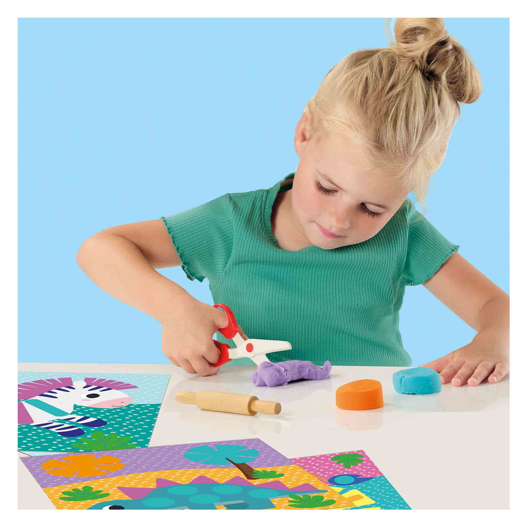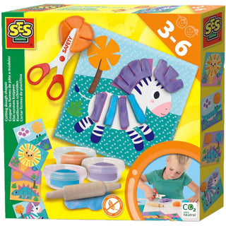 Klei knippen met een schaar? Ja, dat kan heel goed! Deze set van SES Creative leert kinderen verschillende vormen knippen om de 4 geplastificeerde kaarten te kunnen invullen. De set bevat naast de herbruikbare kaarten en de 3 kleuren klei daarom de veilige kinderschaar. Deze schaar is veilig voor haren, vingers en textiel! Kinderen kunnen veilig zelf aan de slag, zonder zorgen voor hun ouders. SES kleiset met 3 kleuren glutenvrije klei, veilige kinderscharen en herbruikbare kaarten. Ontwikkelt motoriek en creativiteit. Geschikt vanaf 3 jaar.