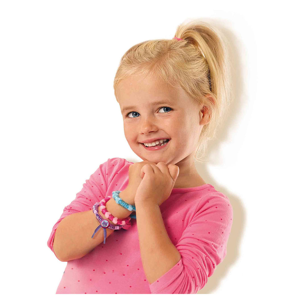 Met de kralen armbanden set kunnen prachtige sieraden gemaakt worden. Kinderen kunnen de veters en verstelbare sluitingen gebruiken om armbanden te maken die altijd passen. Met de hartjes en sterretjes kralen, ronde ponybeads en glitterstickers kunnen unieke kralen armbanden worden gemaakt waar ieder kind trots op zal zijn!