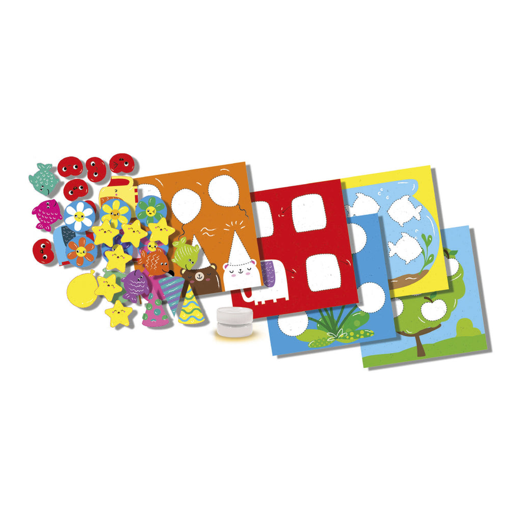 Waar horen appels? Aan de boom! En sterren? In het heelal! Smeer met je vinger wat lijm op de open plekken van de kaarten en plak hier het juiste vormpje op. Zo leer je op een speelse manier vormen herkennen en train je ook al een beetje je fijne motoriek. De lijm is goed uitwasbaar. Inhoud: 6 bedrukte kaarten, plakvormpjes en lijm. Ses my First vormenplakken. Waar horen appels? Aan de boom! En sterren? In het heelal! Smeer met je vinger wat lijm op de open plekken van de kaarten en plak hier het juiste vormpje op. Zo leer je op een speelse manier vormen herkennen en train je ook al een beetje je fijne motoriek. De lijm is goed uitwasbaar. Inhoud: 6 bedrukte kaarten, plakvormpjes en lijm.