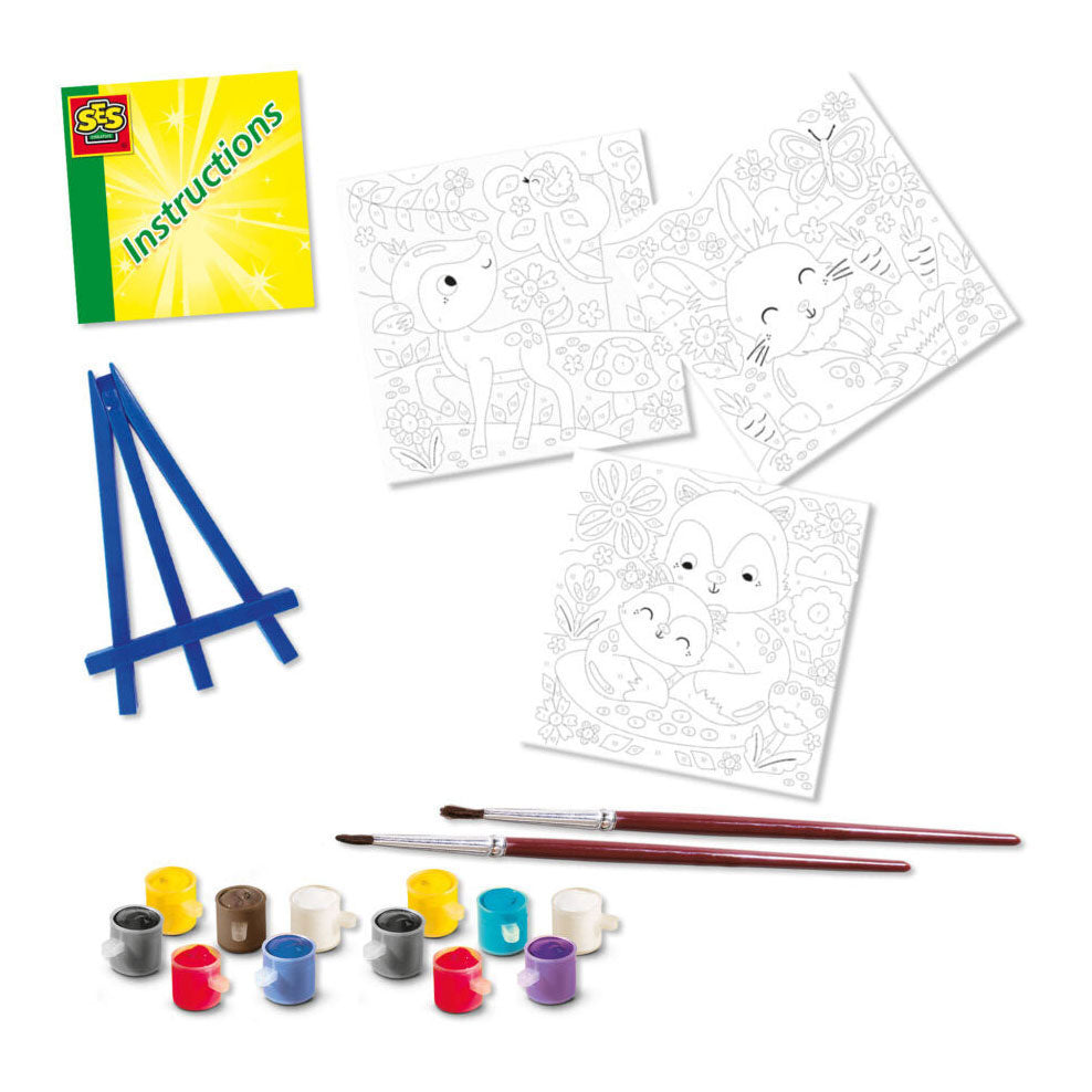 Met deze set kunnen kinderen stap voor stap vrolijke bosdieren schilderen. De schilderen op nummers canvassen van SES Creative maken het eenvoudig om de nummers te volgen en een prachtig kunstwerkje te maken. Kinderen kunnen gemakkelijk de instructies volgen en zo succesvol alles beschilderen.