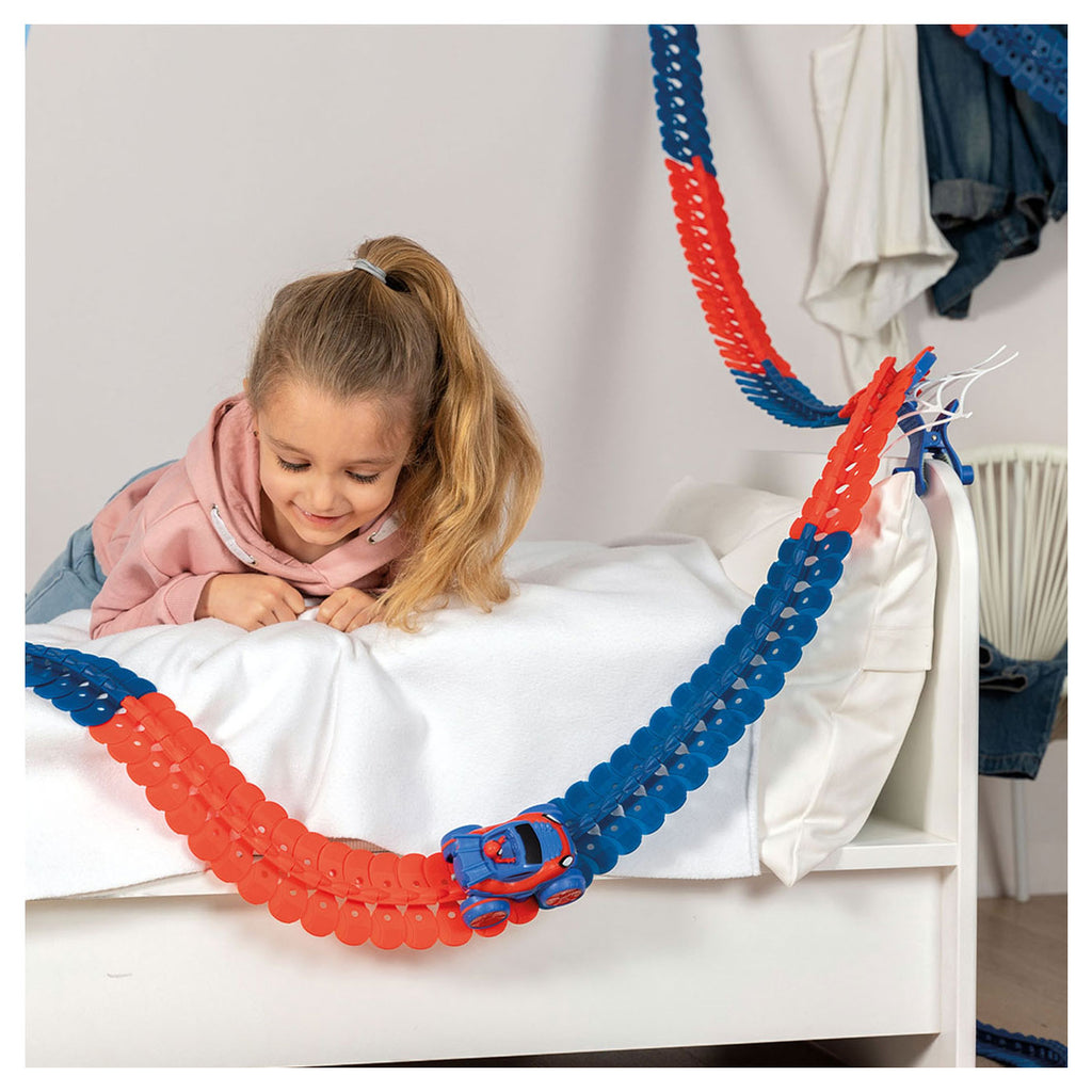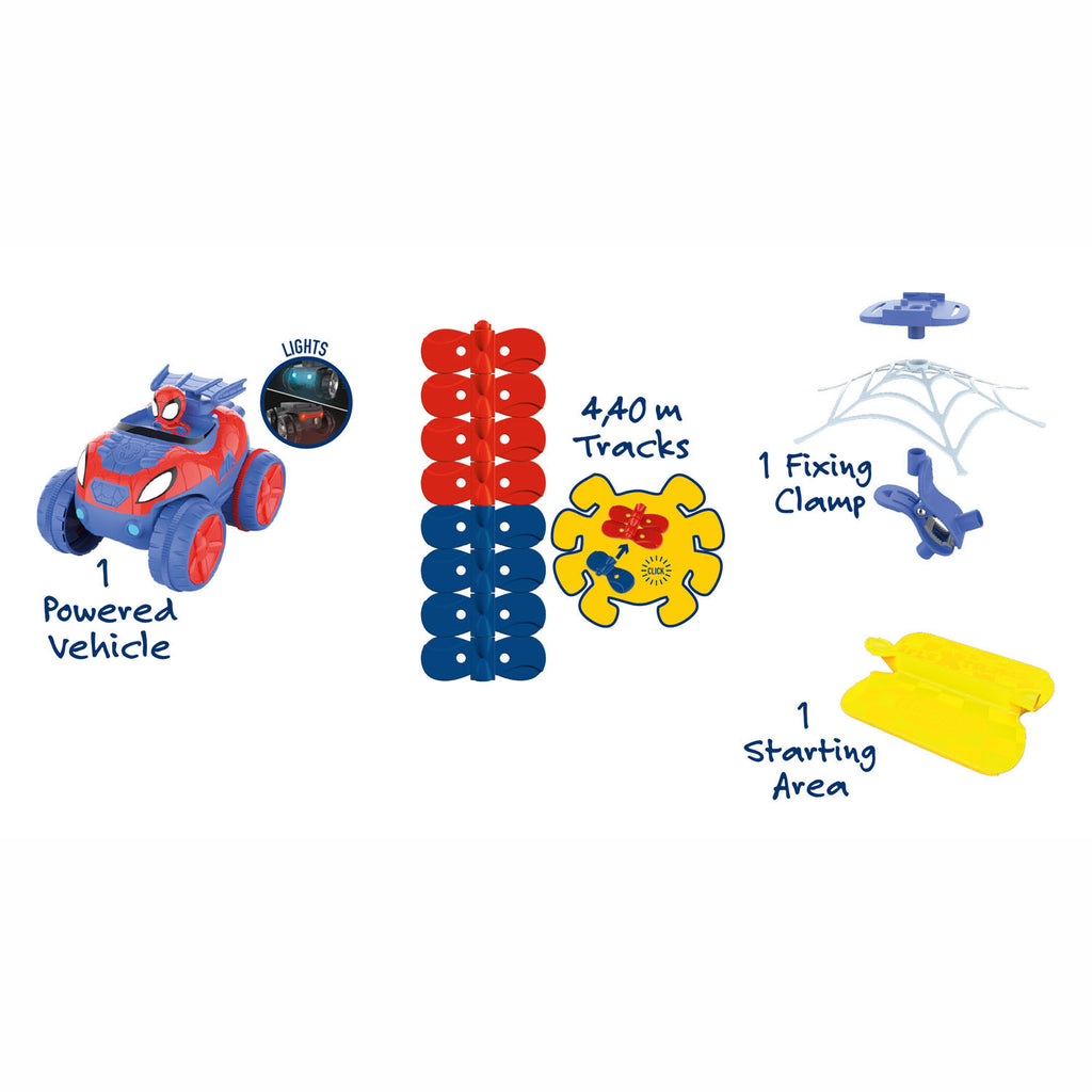 Met Flextreme Spidey duik je in een wondere wereld vol avontuur! Bouw circuits zonder restricties met flexibele tracks en gebruik je omgeving om te racen met Spidey's voertuig. Klim, daal, maak loopings en race over de baan die zich zelfs over objecten kan buigen en in de lucht kan zweven, terwijl de bekende blauwe en rode Spidey-auto met knipperende lichten voor extra speelplezier zorgt! • Inhoud: 4,4 meter aan track, 1 oplichtend elektronisch Spidey-voertuig, 1 start en finish onderdeel en 1 bevestigingsklem. • Voertuig werkt op 3 LR03 batterijen (inbegrepen). • Bevordert fijne motoriek en stimuleert fantasie. • Geschikt voor kinderen vanaf 4 jaar oud.