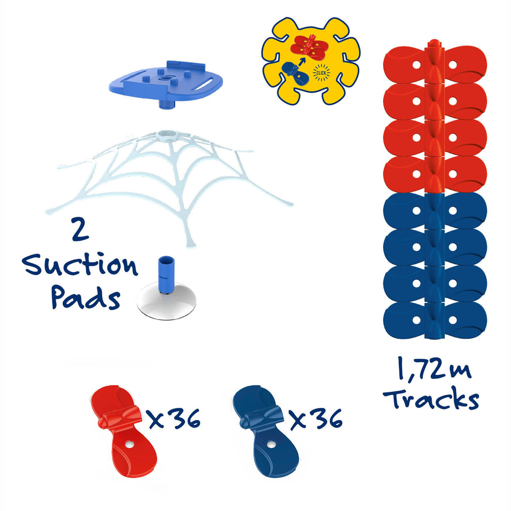 Uitbreidingsset van het Flextreme Spidey-circuit. • Inhoud: 1,72 meter aan baan en 2 zuignappen in spinnenwebvorm. • Bevordert fijne motoriek en stimuleert fantasie. • Let op: voertuig niet inbegrepen. • Geschikt voor kinderen vanaf 4 jaar oud.