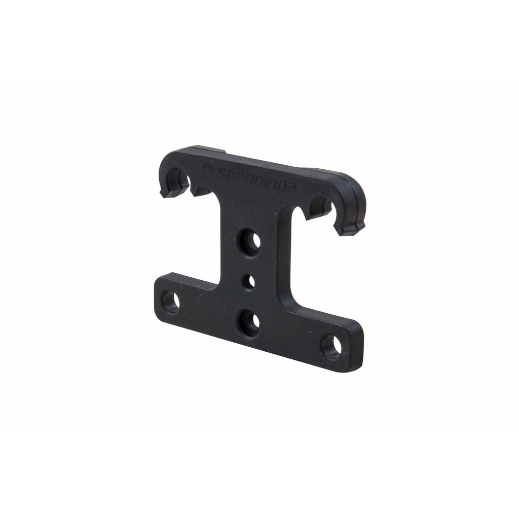 Een zwarte beugel voor onder het zadel om een achterlicht aan te bevestigen. Gemaakt van aluminium, heeft deze beugel een afmeting van 4 x 6 x 1 cm (L x B x H). De middelste bevestigingsgaten hebben een diameter van 4 mm, terwijl de bevestigingsgaten aan de zijkanten een diameter hebben van 6 mm. De afstand tussen de buitenste gaten is 50 mm.