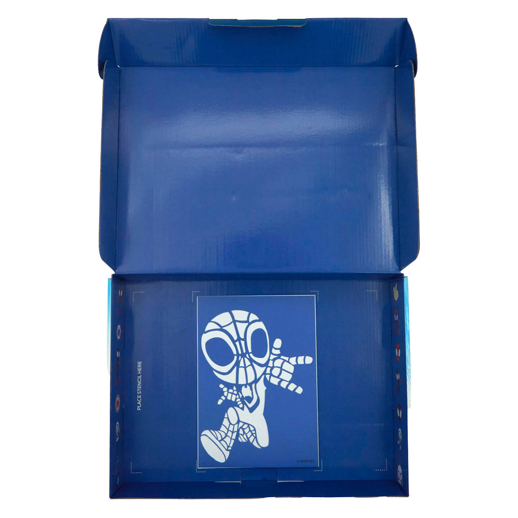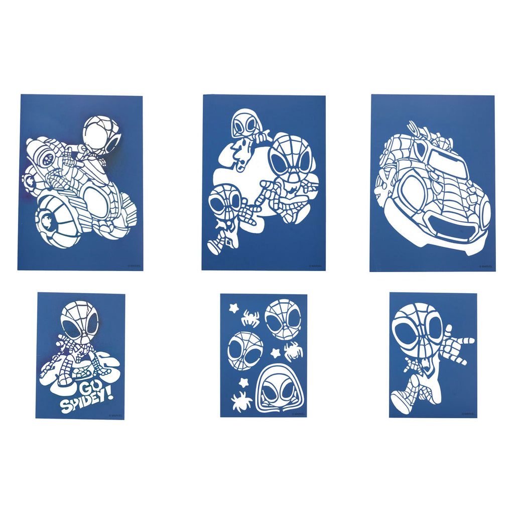 Elektrische blaaspennenset van Spidey en zijn Geweldige Vriendjes. Inclusief 6 spuitpennen op batterijen, 6 hebruikbare stencils, 1 airbrushspuit en 6 vellen A4-papier. Geschikt vanaf 4 jaar.