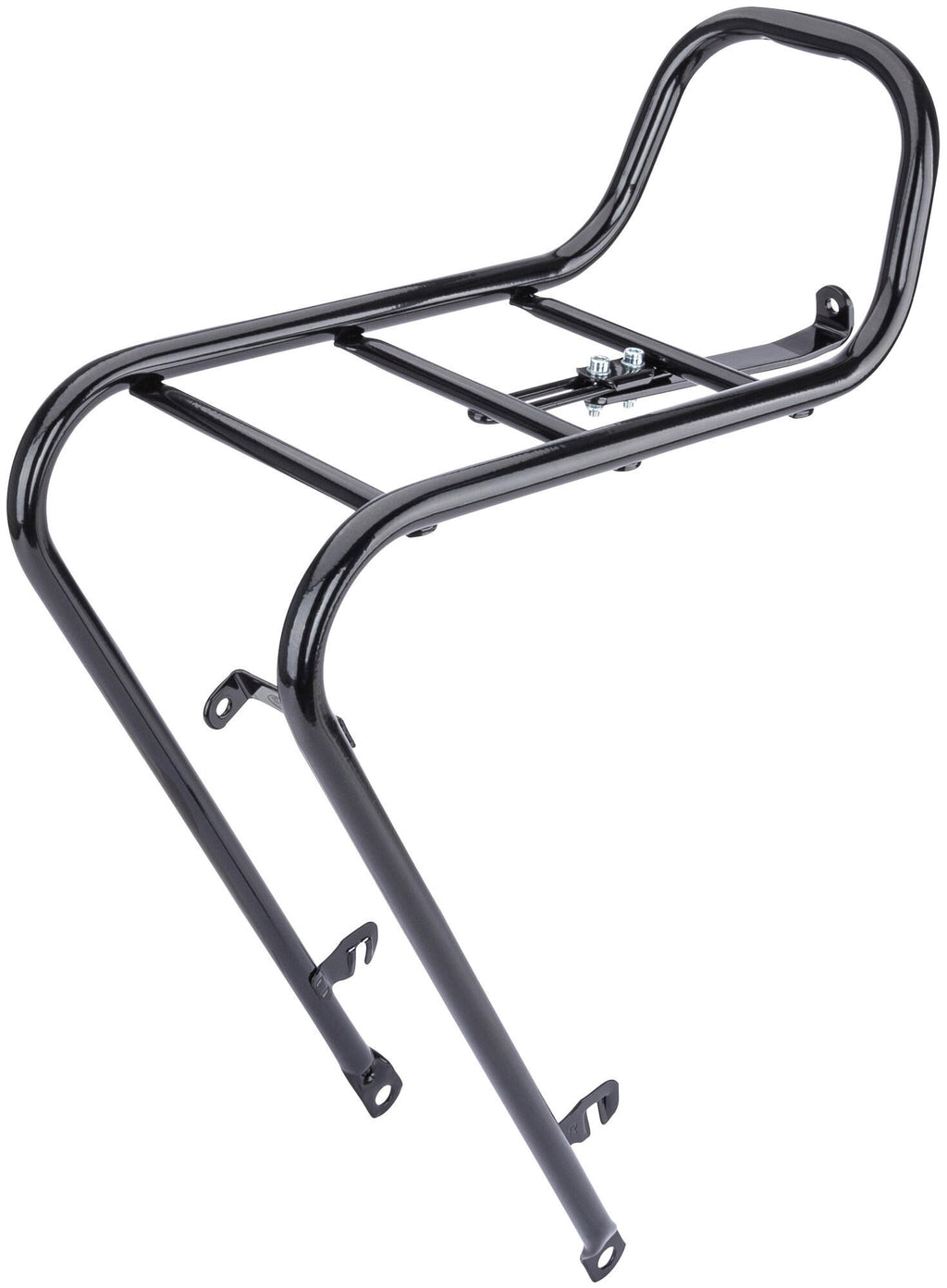 Vooraan, 28", Ø 16 mm stalen buis, montage op de rembout en op de as Slanke en elegante bagagedrager in retro-look, met koplamphouder, met spanogen, belastbaar tot 15 kg, voldoet aan de eisen van ISO11243 Bevestiging voorvork , voorwielas Buisdiameter 16 mm Certificering ISO 11243 Eigenschappen snelbinder Geschikte wielmaten 28 " Hoofdkleur zwart Max. draaglast 15 kg Montage voorop Type/soort Artikel