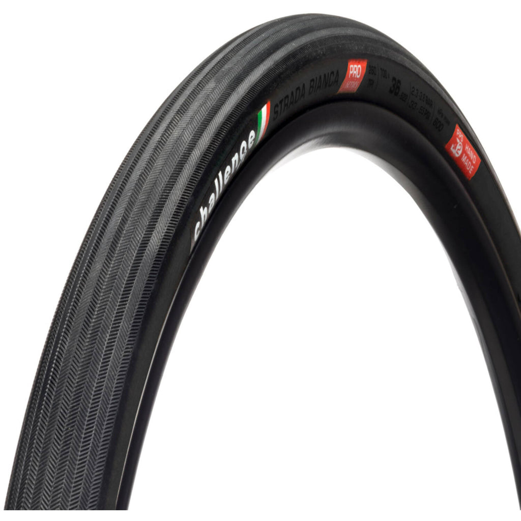 "De Strada Biance fietsband is een wereldklasse band met snelheid en bochtenkarakteristiek. Deze band biedt maximaal comfort en controle, en is geschikt voor alle omstandigheden, van ruwe en geplaveide wegen tot onverharde terreinen. Met een groot volume zorgt deze band voor optimale prestaties. De Challenge Strada is speciaal ontworpen voor gravelfietsen en biedt een uitstekende grip en duurzaamheid. Met een gewicht van slechts 375 gram is deze band lichtgewicht en zorgt voor een soepele rit. De Strada Biance is tubeless-ready, waardoor je kunt genieten van een lagere rolweerstand en verminderd risico op lekke banden. Met een bandbreedte van 36 mm en een ETRTO-maat van 36 - 622 past deze band perfect op 28-inch wielen. De zwarte kleur geeft een stijlvolle uitstraling aan je fiets." Product specificaties: