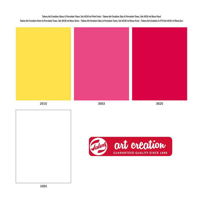 Inhoud: 4x30ml (2010 Goudgeel – 3503 Zachte Magenta – 3025 Intens Karmijn – 1004 Frost).