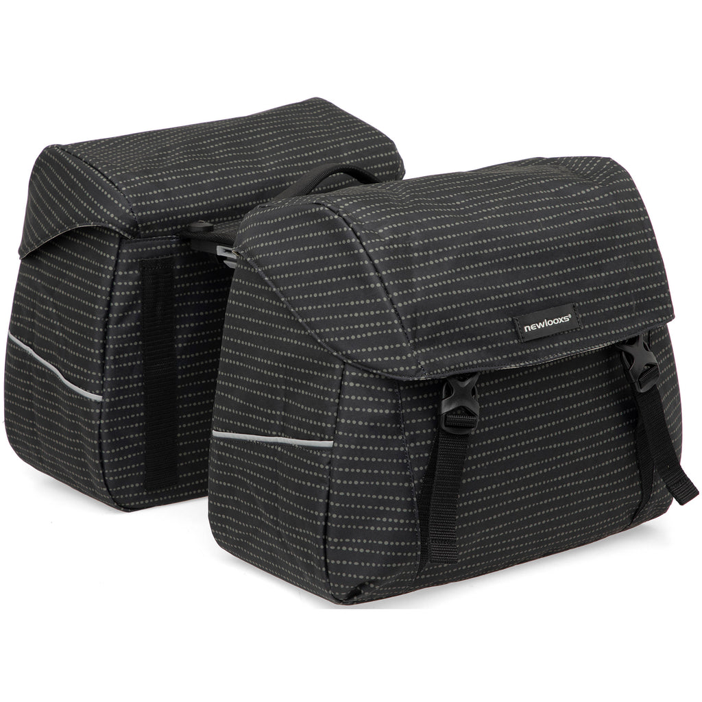 Productinformatie: Met deze stevige dubbele fietstas heb je altijd voldoende ruimte om spullen met je mee te nemen. De Joli dubbele fietstas met MIK adapter past op MIK bagagedragers. Kijk dus even goed of jij een bagagedrager van MIK op jouw fiets hebt! Heb je dit niet, dan kun je gebruik maken van een MIK Carrierplaat die je op je bagagedrager bevestigt. Door het MIK systeem klik je de tas met een handbeweging op en af van de bagagedrager. Deze moderne dubbele fietstas staat mooi op iedere (electrische)fiets. De ronde vormen geven de Joli Double een opvallende uitstraling. Productspecificaties: - Materiaal: Waterafstotend polyester - Inhoud: 37 liter - Gewicht: 1.7 kg - Afmeting: 38 x 18 x 30 cm (2x) - Bevestiging: MIK systeem - Kleuren: Nomi Black Eigenschappen: - Dubbele fietstas gemaakt van waterdicht polyester - Inclusief MIK adapter - Geschikt voor fietsen met een MIK bagagedrager - Sportieve fietstas met waterafstotende sluiting - Reflectie aan beide zijden - Klep valt over het hoofdvak heen - Met kliksluiting - Is te gebruiken met een afstandhouder (niet inclusief) Extra informatie: Deze fietstas is waterafstotend.