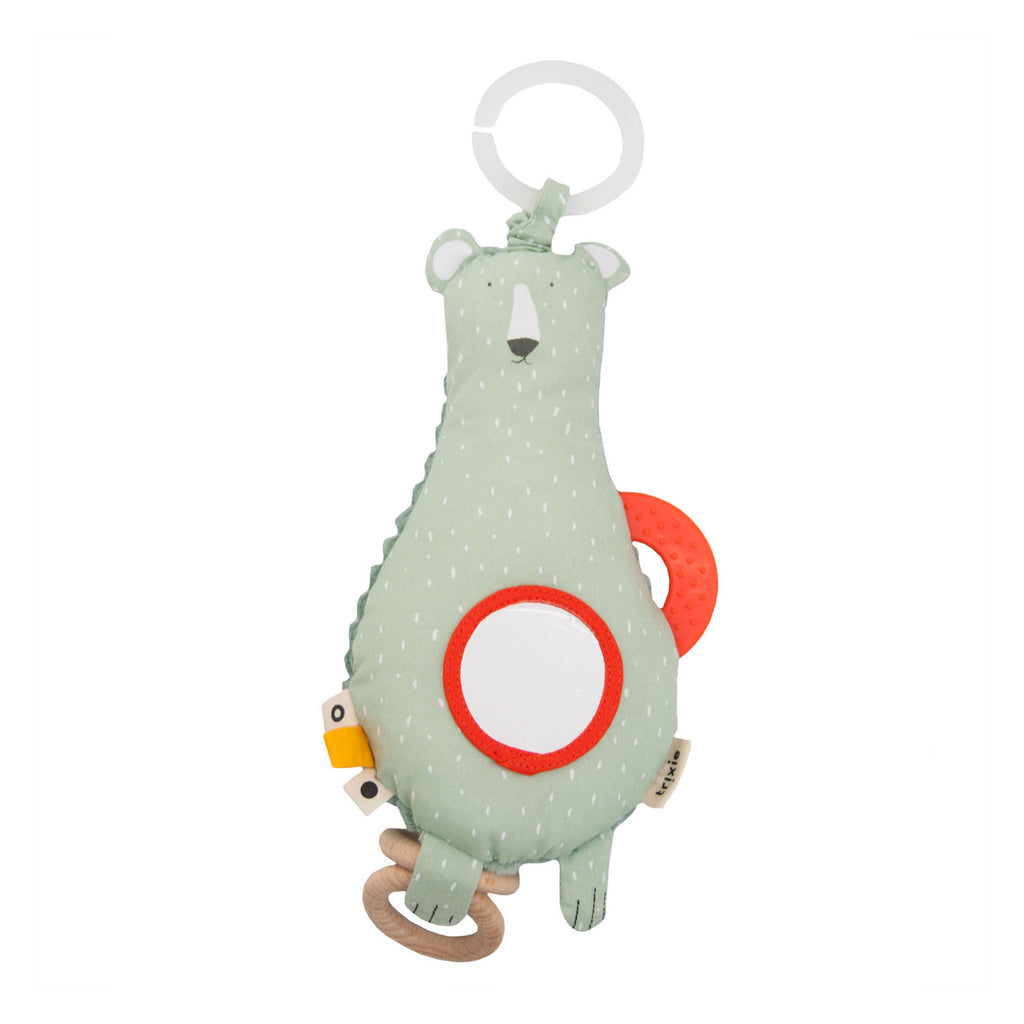 Spelend met ons Mrs. Rabbit activiteitenspeeltje ontdekt je kind alle zintuigen tegelijk. Rammelen met het belletje, spelen met die zachte staart of gekke bekken trekken in het spiegeltje, al deze interessante onderdelen triggeren de verbeelding van je kind en stimuleren de zintuiglijke waarnemingen. Al spelend leren! Materialen Twill: 100% katoen - Corduroy: 100% polyester - Ring: 100% TPE - Vulling: 100% polyester Aanbevolen leeftijd Vanaf 3 maanden Afmetingen 29 cm