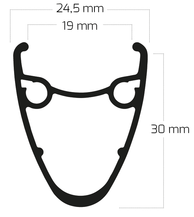 Productspecificaties: ETRTO: 622x19C Velg: Dutch 19 Spaakgaten: 36 Remtype: disc / trommelrem Voor banden met binnenband Grootte ventielgat: 6,5 F Maximale spaakspanning: 1300 N Bandbreedtes: 28 t/m 57 mm Maximale belasting: 120 kg Materiaal: 6063T6 Afwerking: poedercoating Gewicht: 640 gram ERD (effectieve velg diameter): 578 mm