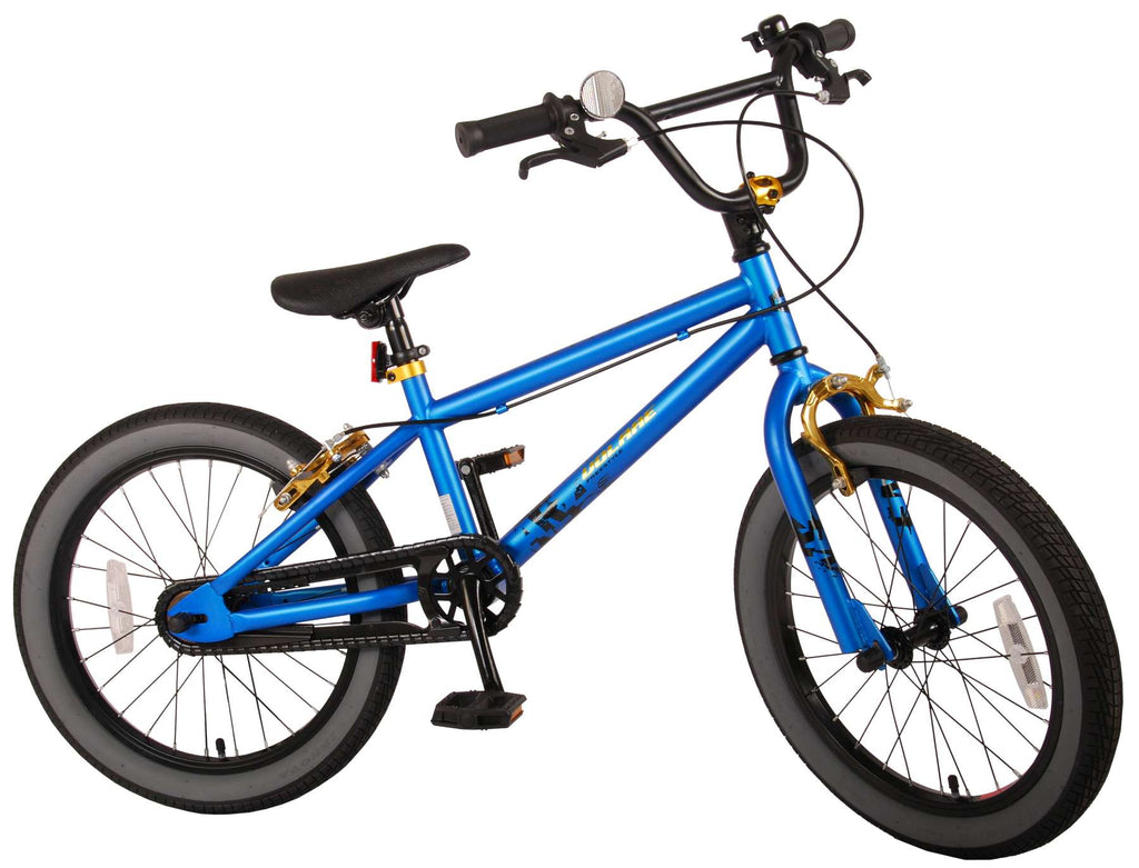 Veiligheid staat voorop! Daarom heeft deze gave fiets geen terugtraprem maar twee handremmen. Daarnaast heeft de fiets reflectoren voor, achter en in de wielen en een leuke bel. Ook aan het comfort is gedacht. De mooie blauwe Volare fiets met gouden accenten heeft extra brede banden, een hoog BMX stuur en zachte handvaten van kraton. Om zo lang mogelijk van de fiets te kunnen genieten is het zadel in hoogte verstelbaar. De fiets is voor 95% afgemonteerd waardoor deze extra makkelijk in elkaar te zetten is.
