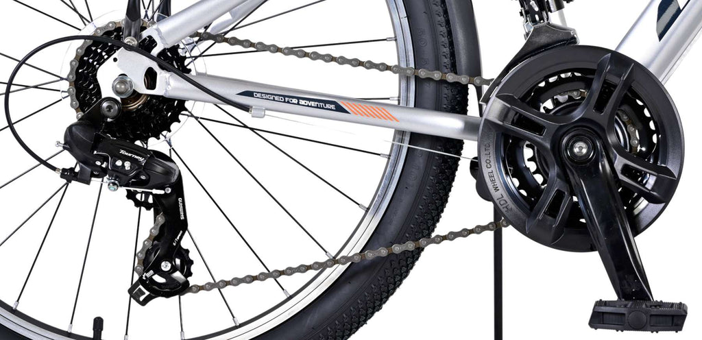 Specificaties van deze Volare Cross Kinderfiets - Jongens - 24 inch - Zilver - 18 versnellingen - Twee handremmen