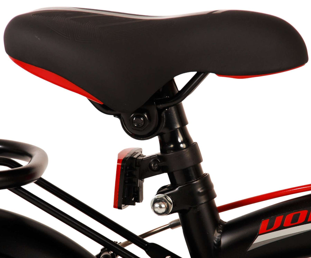 Veiligheid staat voorop! Daarom heeft deze gave fiets geen terugtraprem maar twee handremmen, een gesloten kettingkast en afneembare zijwieltjes. Daarnaast heeft de fiets een leuke bel. Ook aan het comfort is gedacht. De mooie zwarte Volare fiets met rode accenten heeft een luxe zacht zadel, een handige achterdrager, en extra lange spatborden om al het vuil tegen te houden. Om zo lang mogelijk van de fiets te kunnen genieten zijn het zadel en stuur in hoogte verstelbaar. Wordt geleverd inclusief al het montagemateriaal dat nodig is om de fiets in elkaar te zetten!