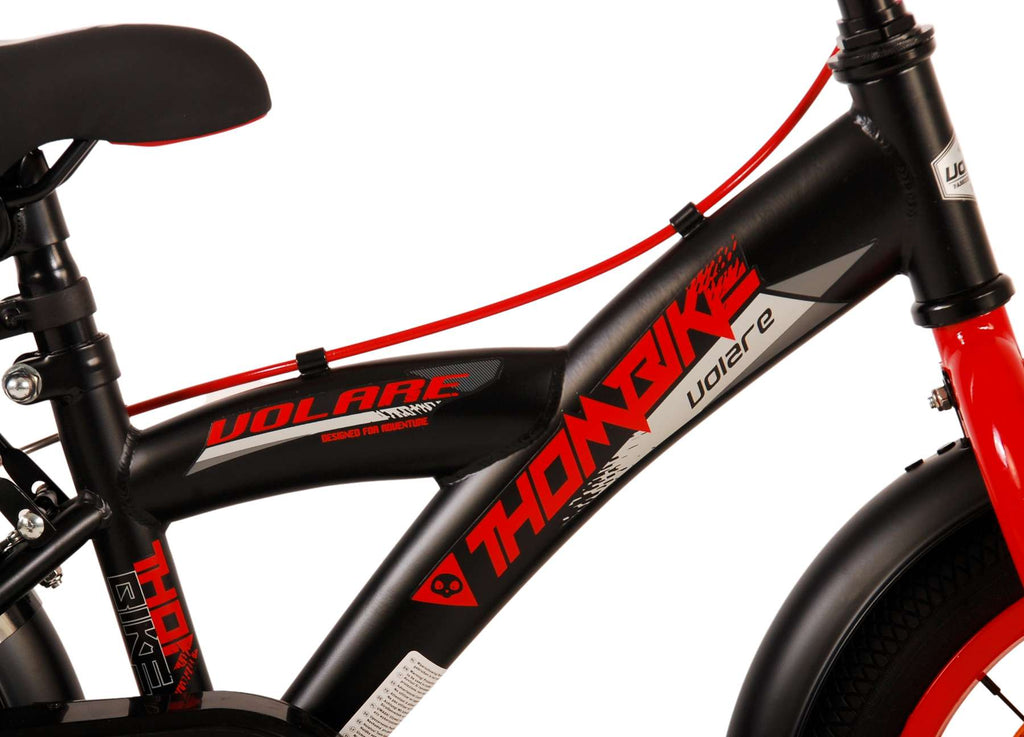 Specificaties van deze Volare Thombike Kinderfiets - Jongens - 14 inch - Zwart Rood - Twee Handremmen