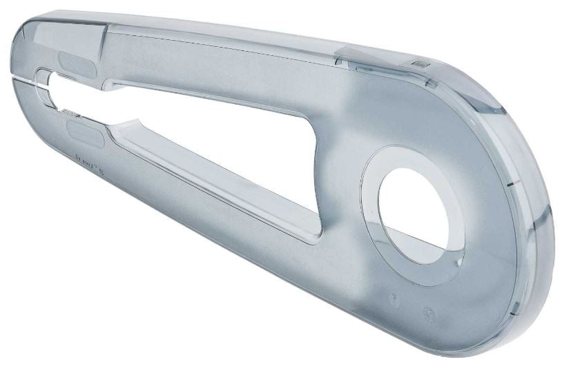 De Axa Benjamin kettingkast is geschikt voor 20" fietsen. Deze kettingkast is gemaakt van transparant kunststof en heeft een lengte van 52 cm en een hoogte van 18 cm. Het kettingscherm is voorzien van een achterwand en achterbeugel, die inbegrepen zijn. Met de Axa Benjamin kettingkast is de ketting aan de voorzijde volledig afgeschermd, waardoor voeten en kleding niet beklemd kunnen raken. Dit heeft als bijkomend voordeel dat de levensduur van de ketting verlengd wordt doordat vocht en vuil minder kans krijgen om de ketting te beschadigen. Het VS Benjamin voorzetscherm is speciaal geschikt voor kinderfietsen en kan gemonteerd worden op fietsen van 20-22 inch. Het scherm is gemaakt van polycarbonaat en is donker van kleur. Product Specifications: - Geschikt voor wielmaat: 20" - Kleur: transparant - Materiaal: kunststof - Lengte: 52 cm - Hoogte: 18 cm - Diameter crankgat: 3,5 cm - Gewicht: 400 gram - Geschikt voor 38 tands tandwielen - RC maat: 367-385 mm - Materiaal polycarbonaat (dark smoke) - Inclusief montagemateriaal