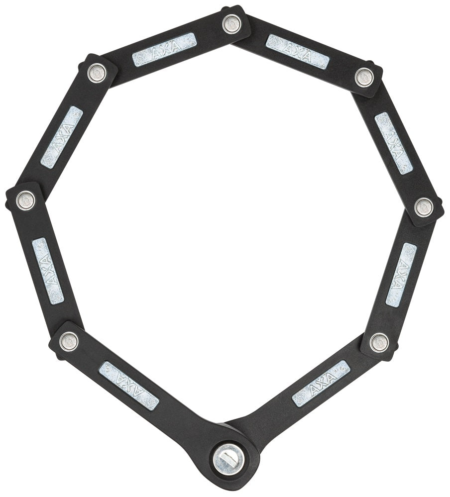 "De AXA Fold Lite 80 is een lichtgewicht vouwslot dat ideaal is voor dagelijks gebruik. Het slot is ontworpen voor fietsen die voor korte tijd worden geparkeerd op plaatsen met een laag diefstalrisico, zoals een dorp of een bewaakte stalling. Met een lengte van 80 cm en flexibele scharnierpunten kan je je fiets gemakkelijk aan een paal of hek vastmaken. De geharde stalen schakels hebben een diameter van 5 mm en zijn voorzien van een rubberen behuizing om krassen op je fiets te voorkomen. Het vouwslot wordt geleverd met een handige houder die op de bidonnokken kan worden gemonteerd of aan de stang kan worden bevestigd met de meegeleverde strips. Dankzij het antirammelmechanisme geniet je tijdens het fietsen van een geruisloze rit. Het vouwslot wordt geleverd met 2 sleutels en biedt een veiligheidsniveau van 7." Product Specifications: - Lengte: 80 cm - Schakels: 20 x 5 mm - Slottype: Vouwslot - Openingsmethode: Sleutel - Afwerking: Mat - ART niveau: Geen ART keurmerk - Kleur: Zwart - Gewicht: 560 gr - Merk: AXA - Geschikt voor: stadsfietsen, racefietsen, mountainbikes en kinderfietsen"