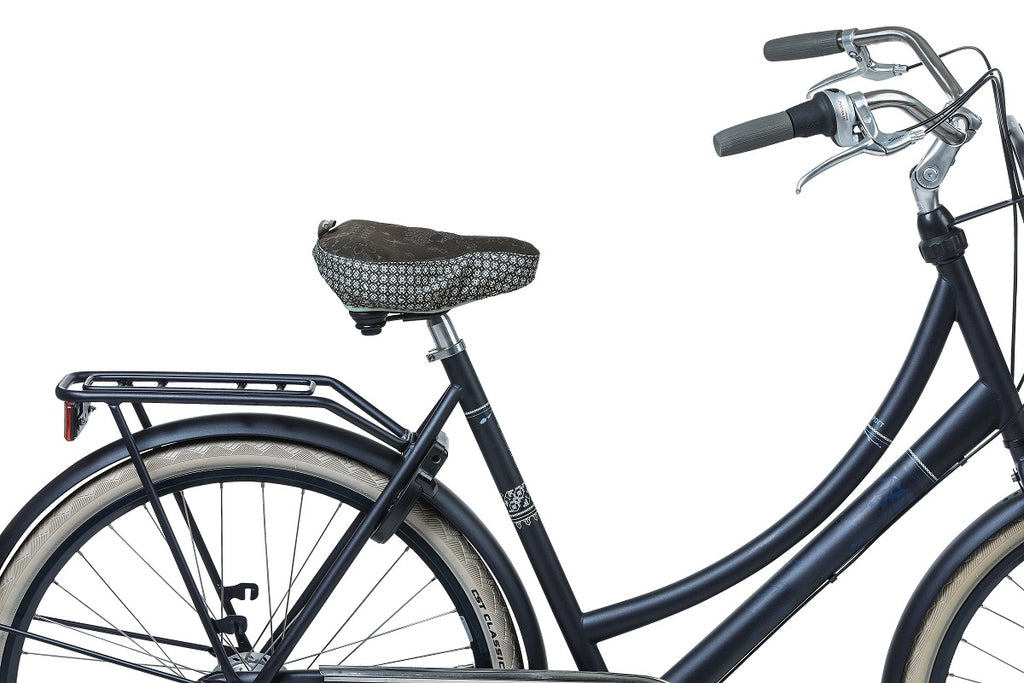 Het Basil Bohème zadeldekje is een praktische hoes voor het zadel van een damesfiets. De hoes is gemaakt van waterdicht materiaal, waardoor je zadel altijd mooi droog blijft. Dat is wel zo prettig als je na een regenbui weer op de fiets stapt. Ga je dagelijks met de fiets naar je werk of school en staat deze in een niet-overdekte fietsenstalling? Dan is een zadelhoes wel een welkom geschenk. Het zadeldekje van Basil Bohème heeft een houtskoolachtige kleur en is zeker iets voor jouw fiets. Natuurlijk is een zadeldekje niet alleen praktisch. Het is ook hip en mag best gezien worden. Dankzij de bohemien print valt je fiets onmiddellijk op en weet je ook direct waar hij staat. Je hoeft geen gebruik meer te maken van witte plastic tasjes om je zadel te beschermen, maar je kunt je fiets helemaal stylen met het Basil Bohème zadelhoesje. Ben je fan van deze zadeldekjes en wil je meerdere exemplaren bestellen? Bekijk dan zeker ons volledige aanbod zadelhoezen. Basil heeft bovendien nog meer praktische fietsaccessoires voor op een dames- of herenfiets. Het volledige assortiment vind je elders op de website. Ontdek hoe je je fiets nog meer kunt opleuken.