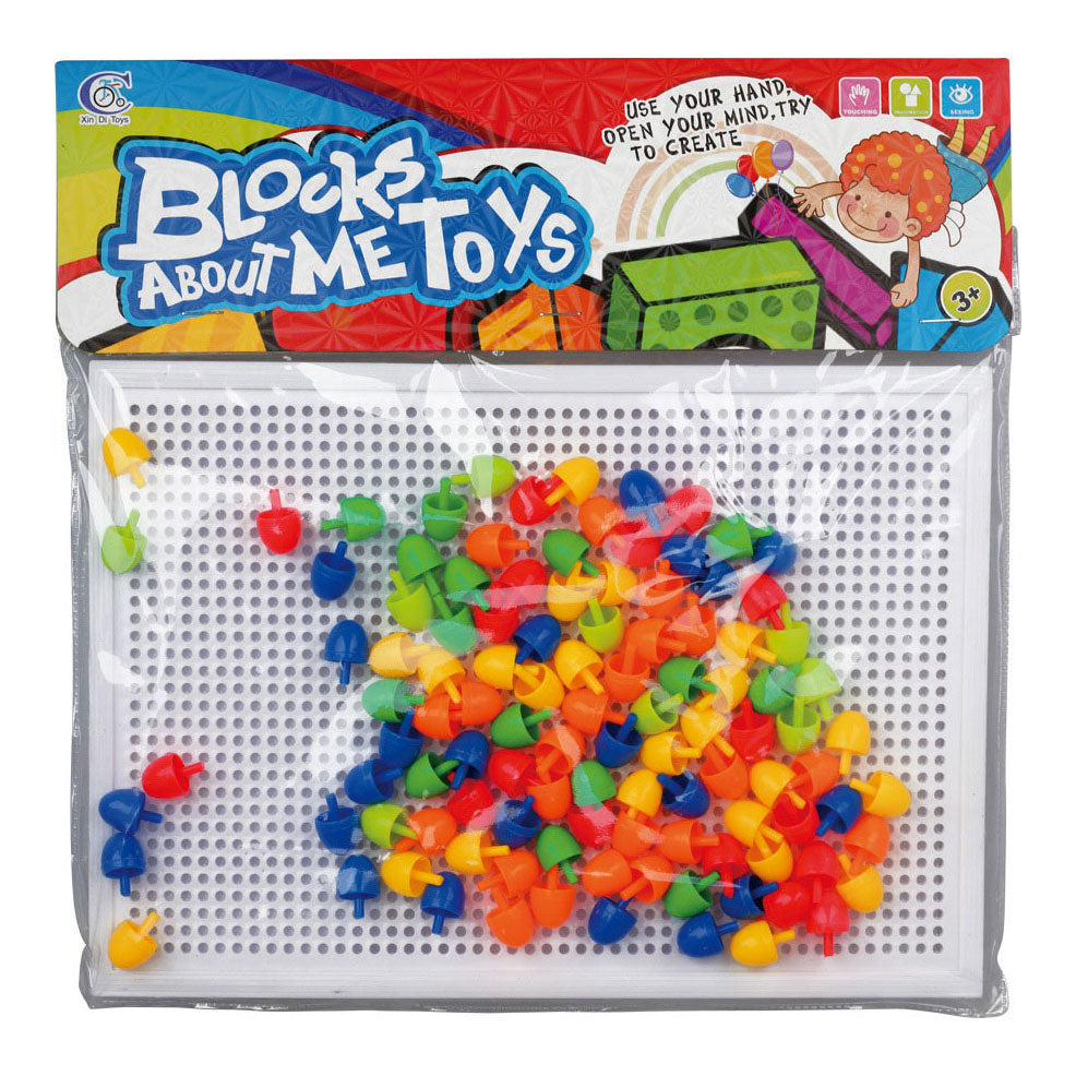 Mozaïekbord met insteekpinnen. Afmetingen: 30 x 33 centimeter groot. Geschikt vanaf 3 jaar.