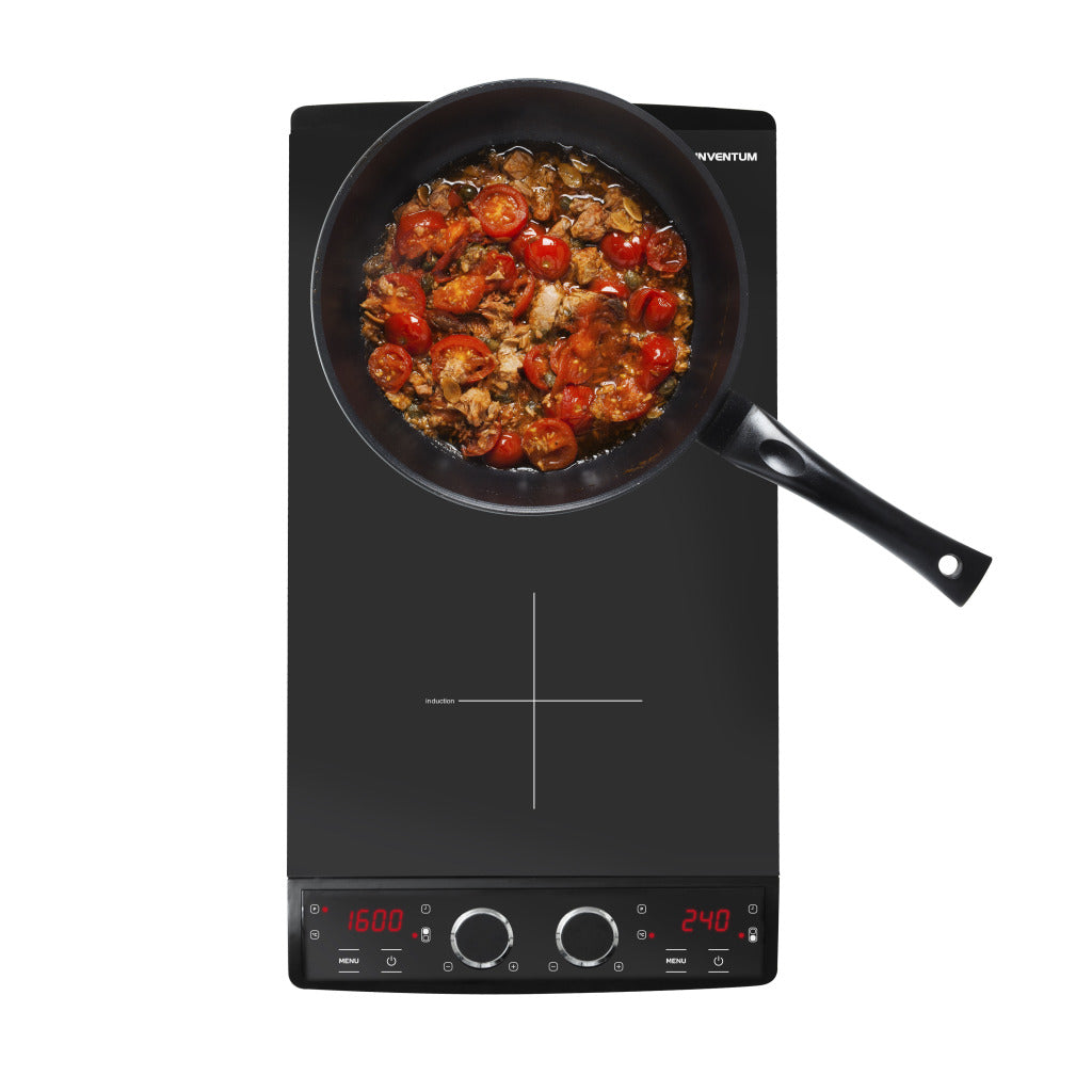 Heeft een vermogen van 2900 watt. Het is een 1-fase kookplaat: stekker in het stopcontact en koken maar! De inductiekookplaat heeft voor beide kookzones 10 temperatuur- en vermogensstanden. De temperatuur kan ingesteld worden van 60 tot 240°C. De inductiekookplaat is voorzien van een instelbare timer tot 180 minuten en is gemakkelijk te bedienen door middel van de tiptoetsen en draaiknoppen.