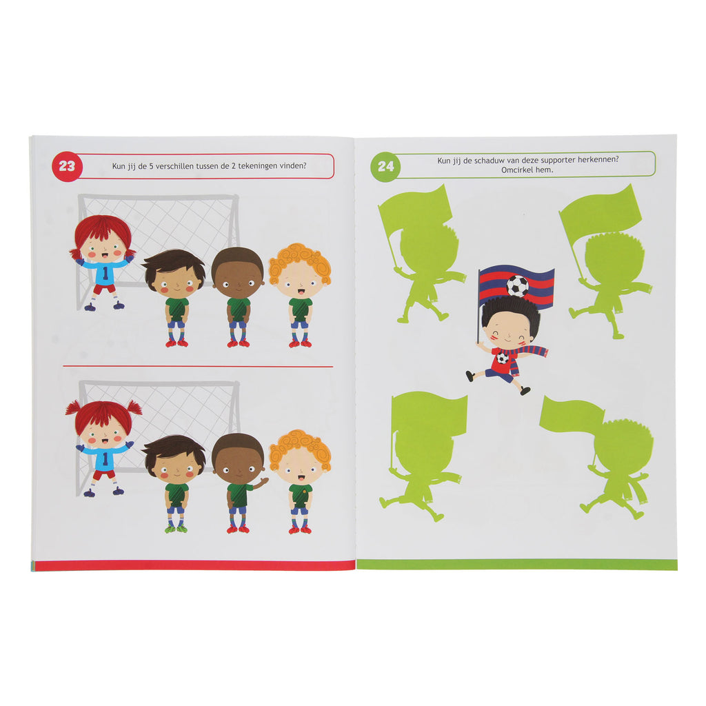 Met dit leerzame spelletjesboek met als thema voetbal verveel jij je geen moment. Er staan in dit boek wel 100 leuke spelletjes zoals puzzels, doolhoven, van stip naar stip lijnen trekken en kleuren volgens code. De sprekende illustraties en duidelijke uitleg per spel dagen je uit om actief met het boek bezig te zijn. Het 100 voetbalspelletjesboek is geschikt voor kinderen vanaf 4 jaar.