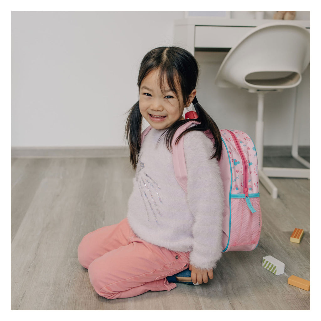 Deze Minnie Mouse rugzak is perfect voor mee naar de opvang, naar school of mee op uitstapjes. Deze duurzame rugzak heeft een groot hoofdvak met verbrand om je spullen veilig in op te bergen. Aan de zijkant zitten mesh zijvakken, waar je nog meer in kunt opbergen. De gewatteerde schouderbandjes zijn verstelbaar en kunnen zo aangepast worden dat de rugzak altijd comfortabel draagt. Met een draaglus aan de bovenkant is het ook gemakkelijk om in de hand te dragen en op te hangen op school. In blauwe uitvoering, met 3D-look afbeelding van jouw vriendin Minnie Mouse op de voorkant. Afmetingen: 30 bij 25 bij 10 cm. Materiaal: polyester. Geschikt voor kinderen vanaf 3 jaar.
