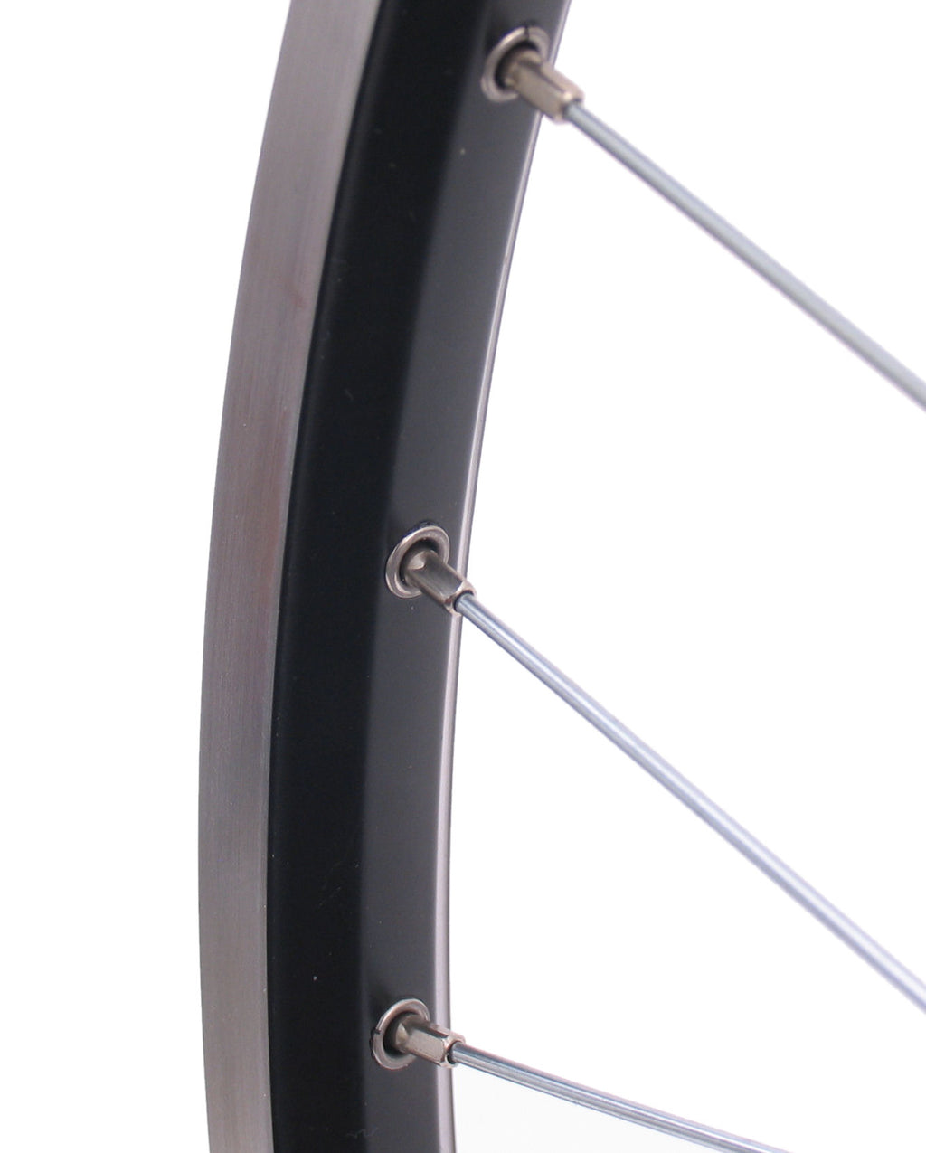 Handgespaakt achterwiel, voorzien van Sunrace naaf.