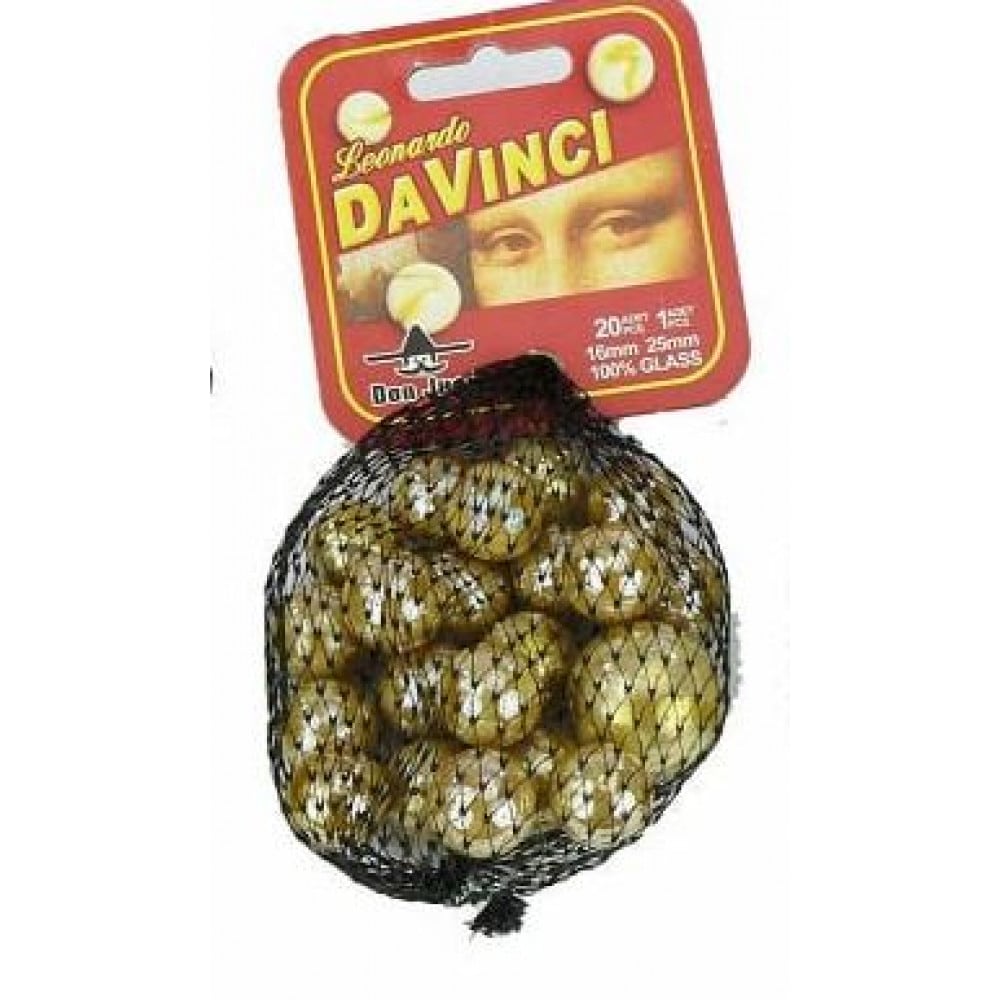 Da Vincy knikkers 20 kleintjes van 16 mm en 1 grote van 25 mm doorsnee. Knikkers zijn gewoon leuk! Dat luisteren je ouders en grootouders al. het is weer knikkertijd dus lekker naar buiten knikkeren o binnen met de makkelijke knikkerpot. Herontdek het plezier van knikkers – klein, kleurrijke en tijdloos!Ben je op zoek naar een leuk, leerzaam en betaalbaar speelgoed waar kinderen én volwassenen blij van worden? Dan zijn knikkers dé perfecte keuze! Al generaties lang zorgen deze bolletjes voor uren speelplezier, zowel op het schoolplein als thuis in de woonkamer.Onze knikkercollectie biedt voor iedereen wat wils: van klassieke bonken en kleurrijke glimmers tot unieke limited editions die je verzameling compleet maken. Laat kinderen hun motoriek, concentratie en sociale vaardigheden ontwikkelen terwijl ze spelenderwijs de leukste knikkerspelletjes ontdekken.Of je nu herinneringen wilt ophalen, een originele uitdaging zoekt of gewoon weer eens traditioneel wilt knikkeren—met onze knikkers raak je nooit uitgespeeld! Bestel nu en geef speelplezier een nieuwe draai!