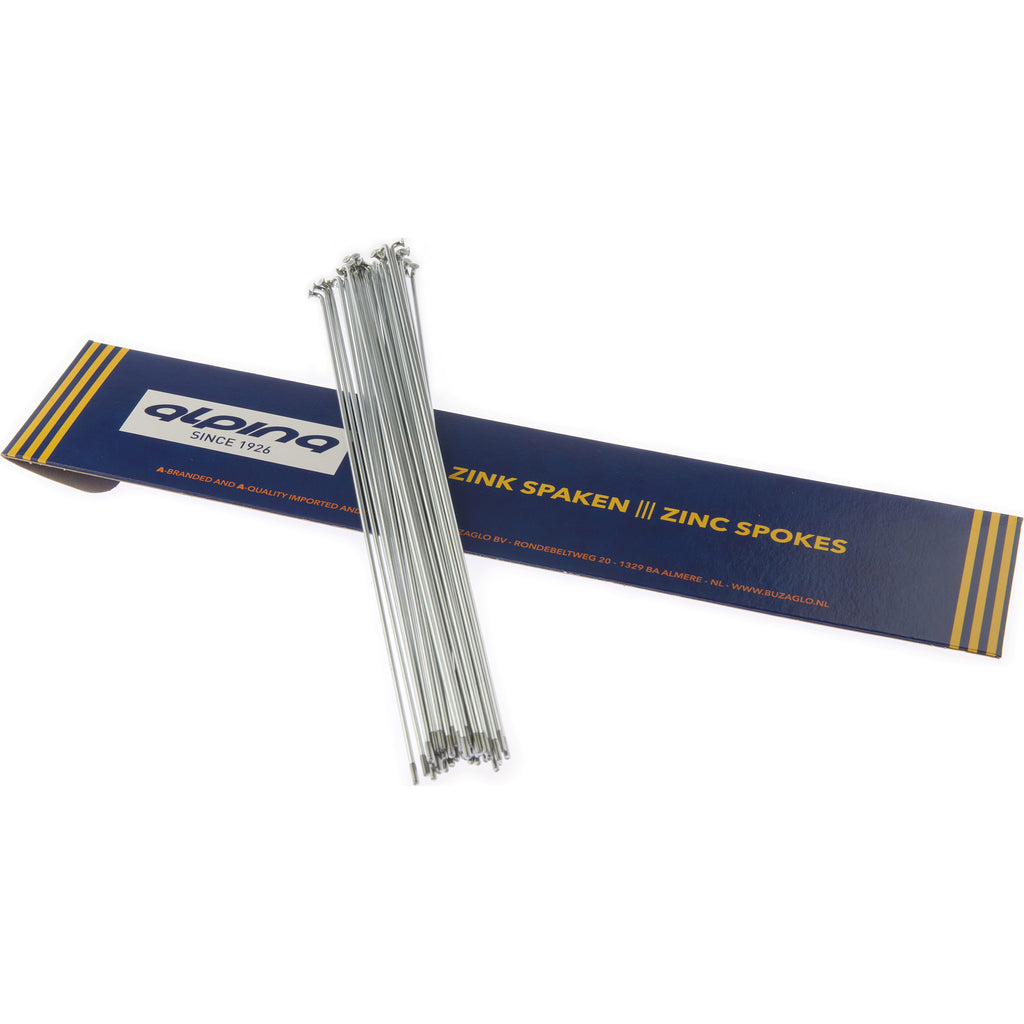 Deze Alp spaak is gemaakt van zink en zilver en heeft een lengte van 14-184mm. Het wordt geleverd zonder nippel en verpakt per 18 stuks.