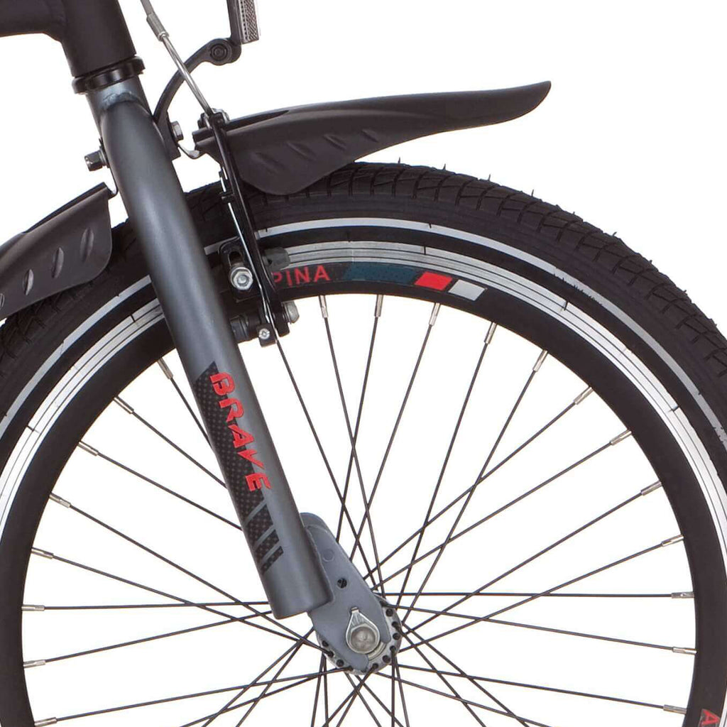 "De Alpina voorvork in de kleur Iron Grey Matt is het model Brave. Deze voorvork is geschikt voor de Alpina Brave 20 Grs en heeft een draad. Met zijn stoere uitstraling en duurzame constructie is deze voorvork perfect voor avontuurlijke fietstochten." Productspecificaties