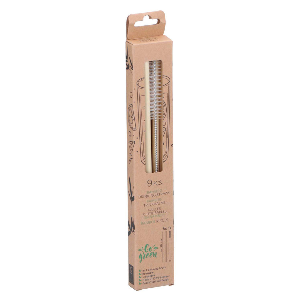 Set van 8 herbruikbare bamboe rietjes + schoonmaakborsteltje. Afmeting: Ø0,6 x 20 cm